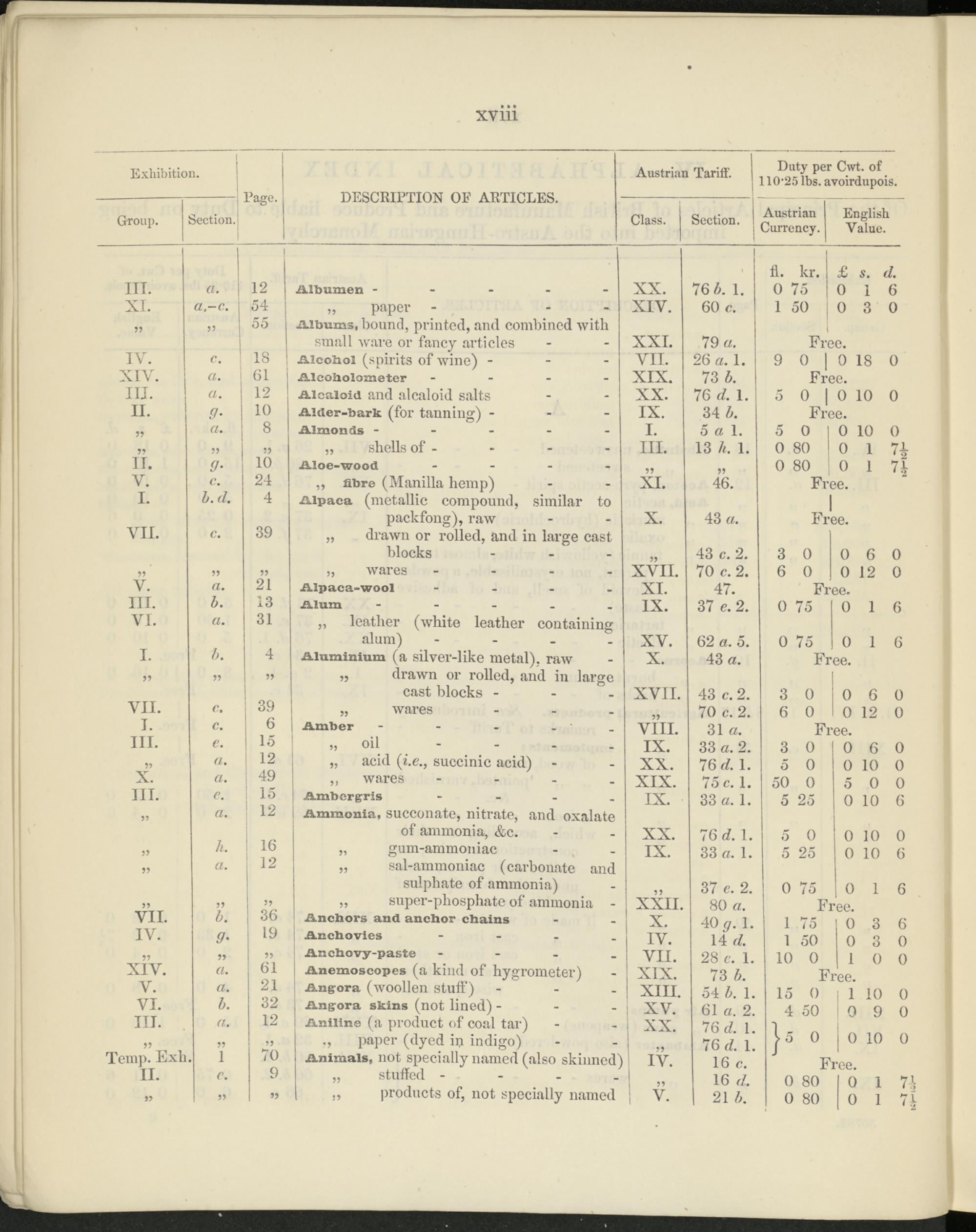 Austrian Tariff Duty per C . wt ' of .