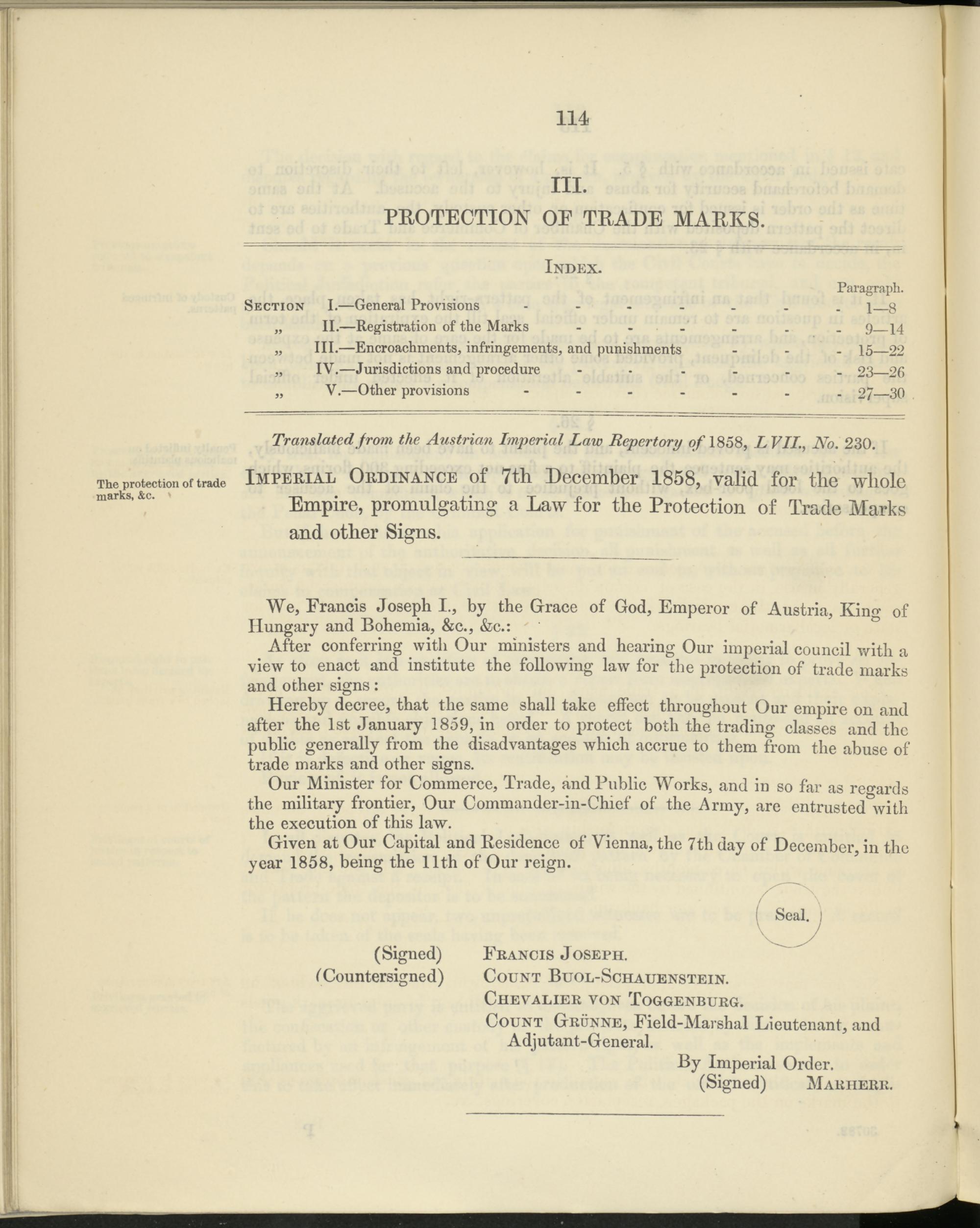 Translated from the Austrian Imperial Law Repertory of 1858, LVII., No. 230.