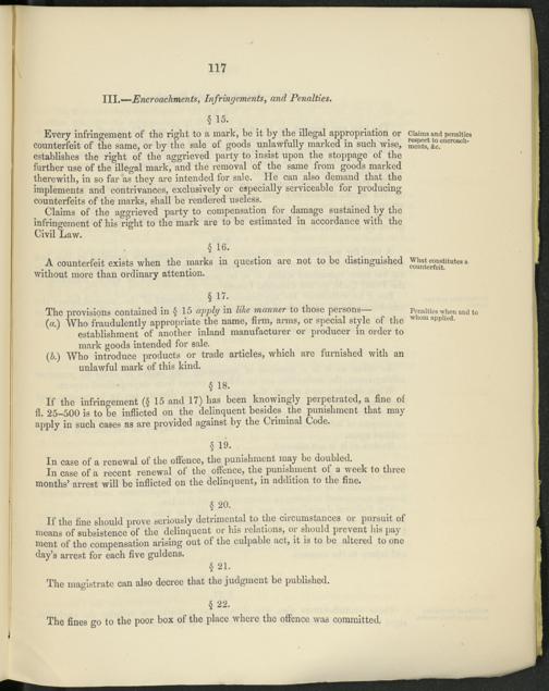 If the infringement (§15 and 17) has been knowingly perpetrated, a fine of fi. 25-500 is to be inflicted on the delinquent besides the punishment that may apply in such cases as are provided against by the Criminal Code.