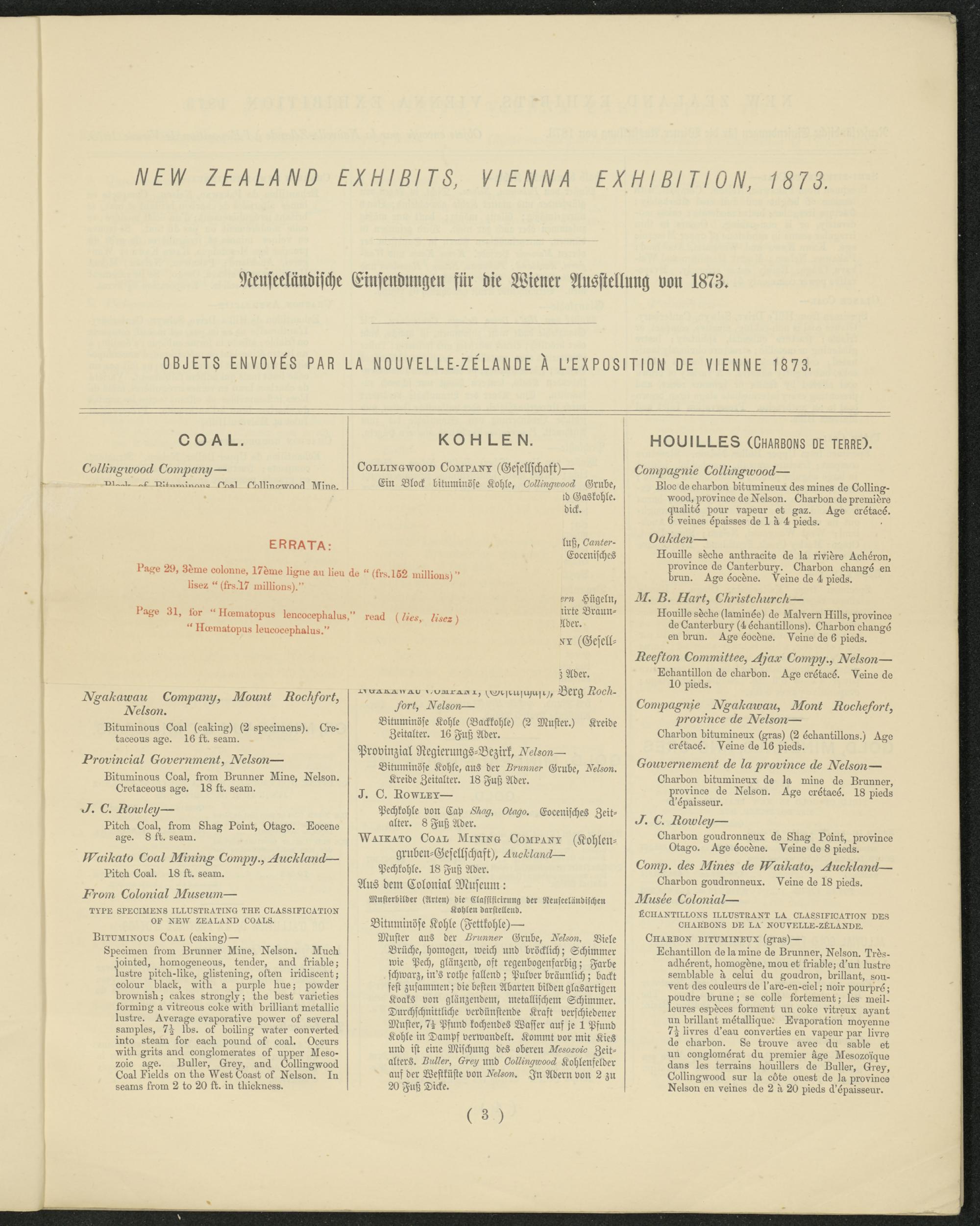 Neuseeländische Einsendungen für die Wiener Ausstellung von 1873.