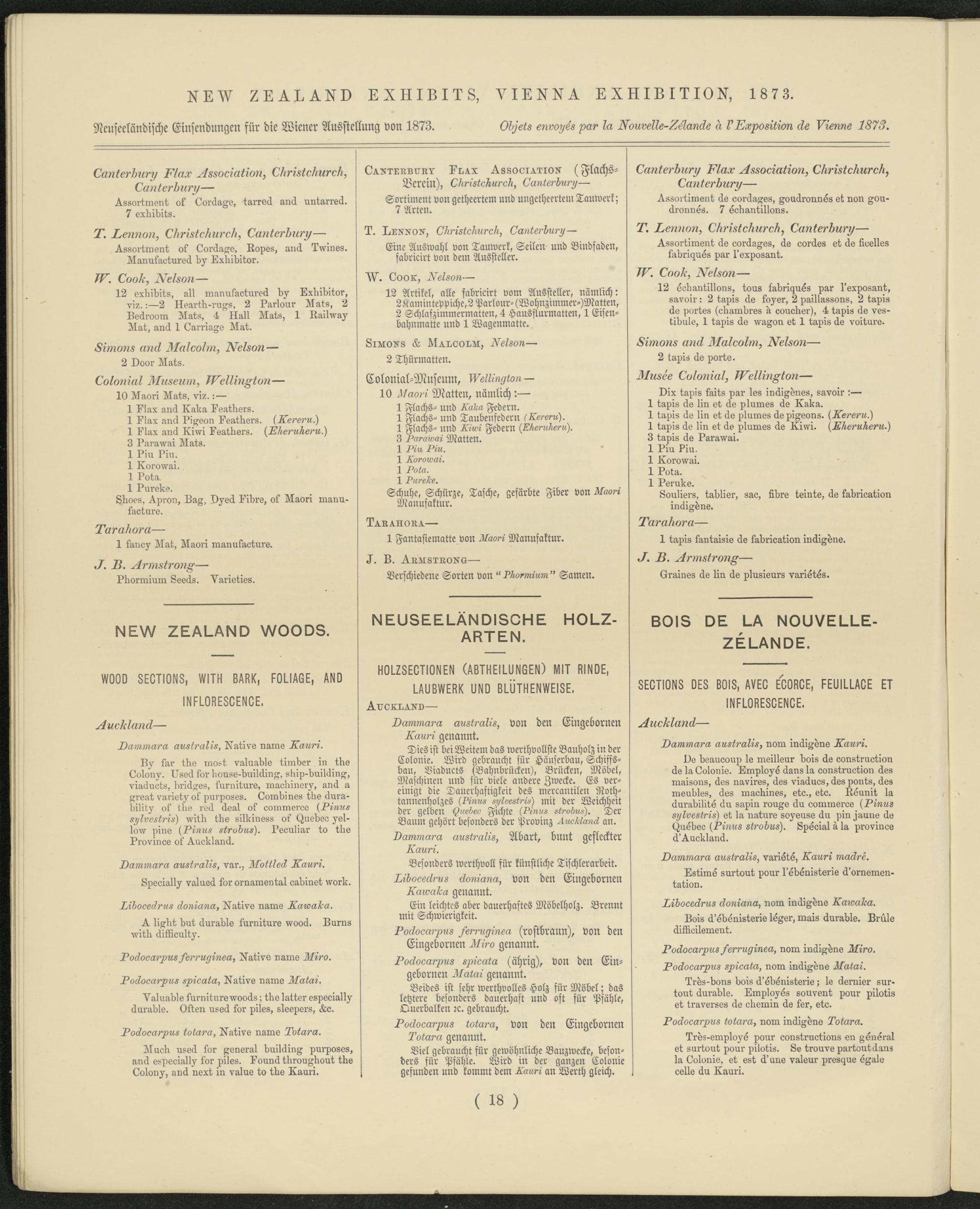 Neuseeländische Einsendungen für die Wiener Ausstellung von 1873.