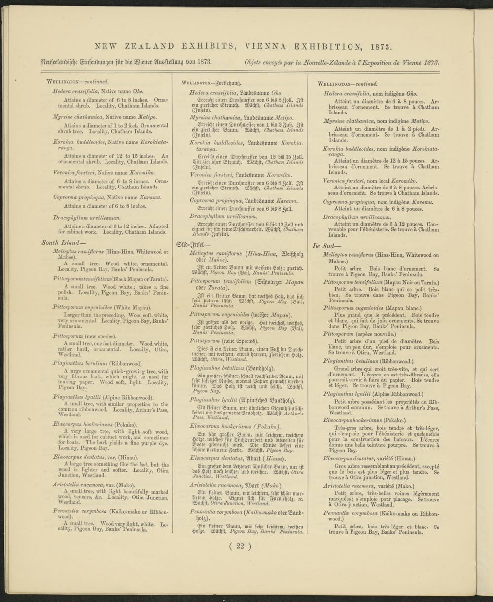 ?stit arbre ä'nn xieä äs äianietrs. Lois blane, nn pen änr, s'eniploie xonr ornsrnents. 8e tronve a Otira, Festland.
