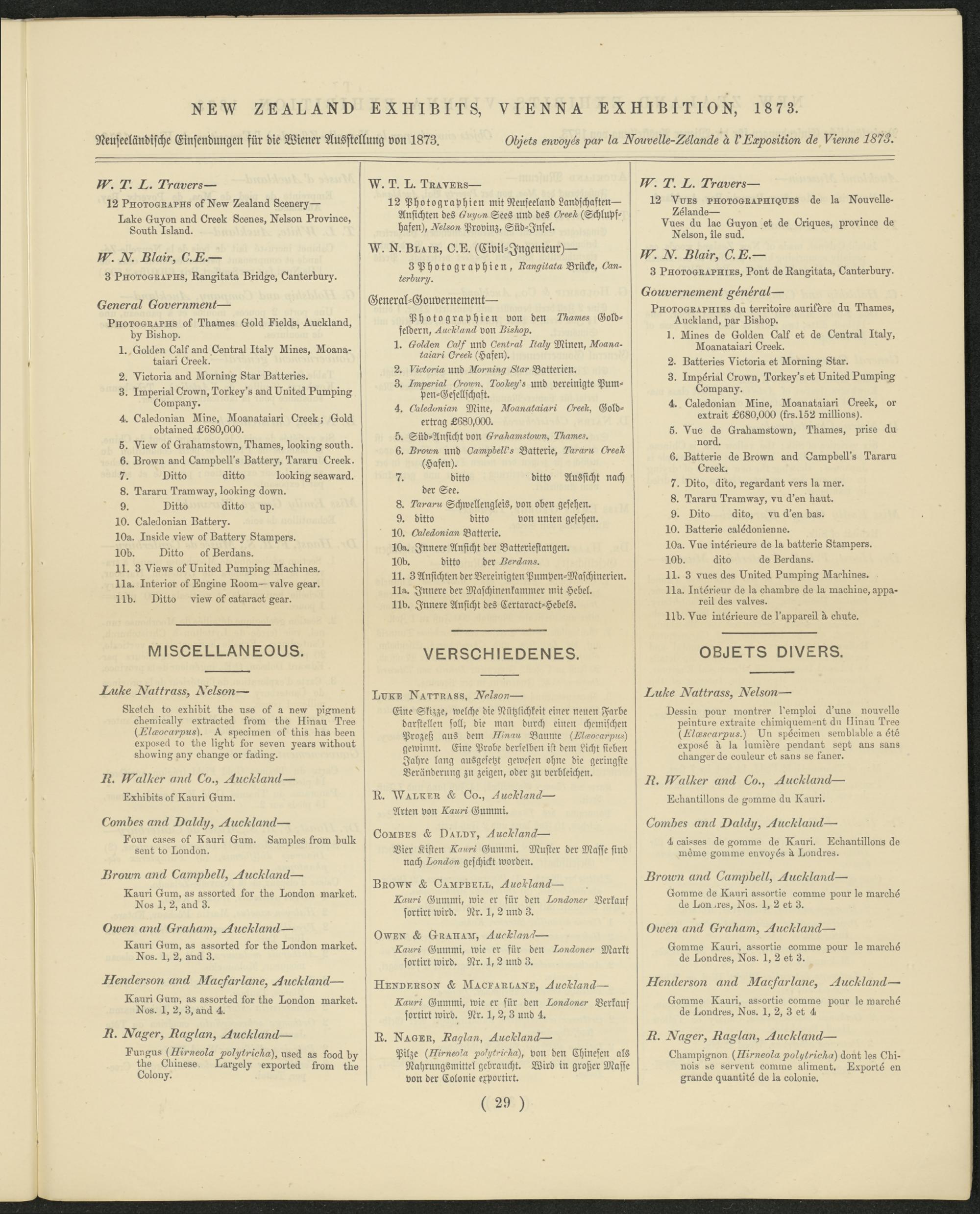 Neuseeländische Einsendungen für die Wiener Ausstellung von 1873. Oö/erls envoz^s a /'Lr^osrAon 7s ^r'en/rs 7S7A.