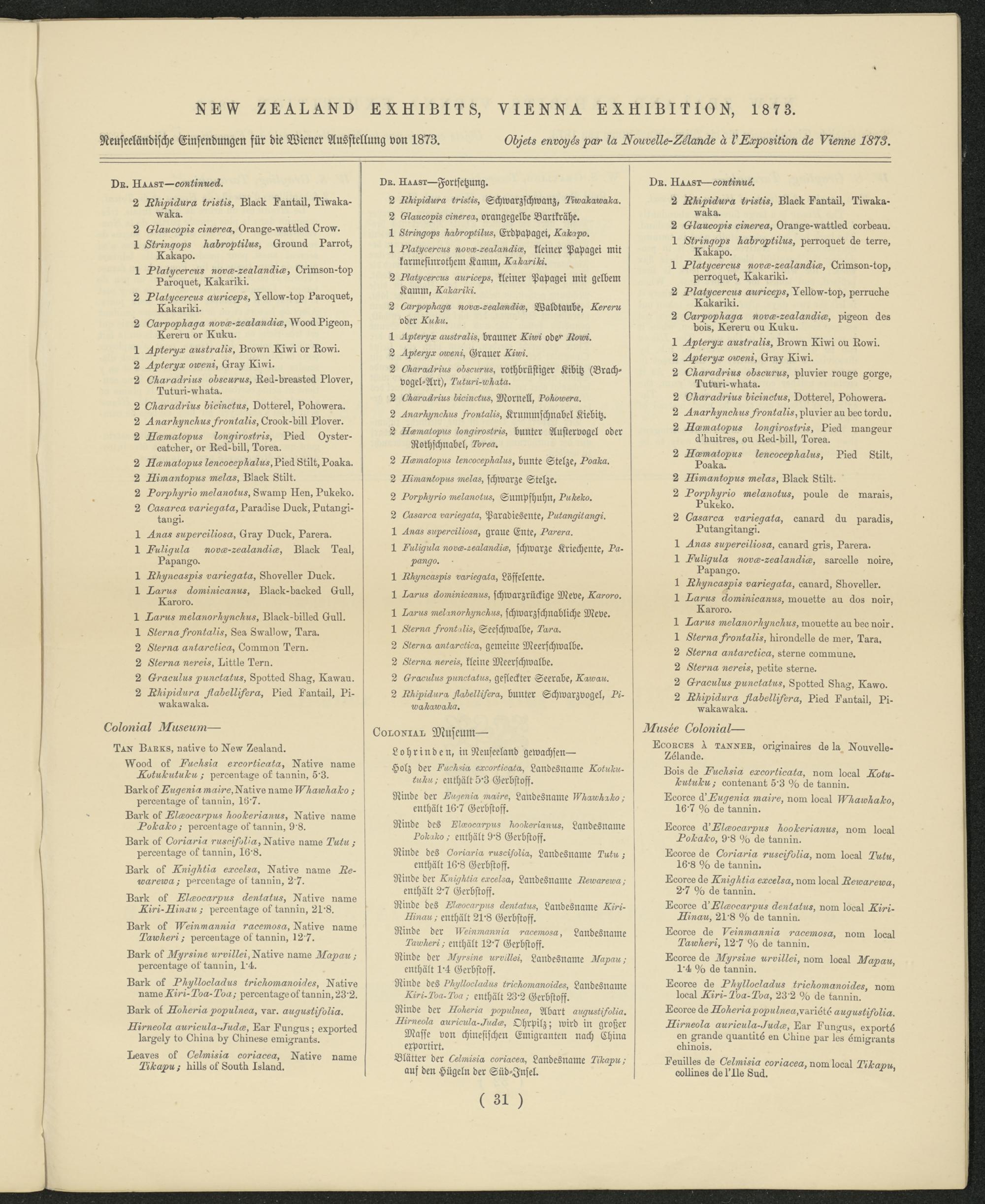 Neuseeländische Einsendungen für die Wiener Ausstellung von 1873.