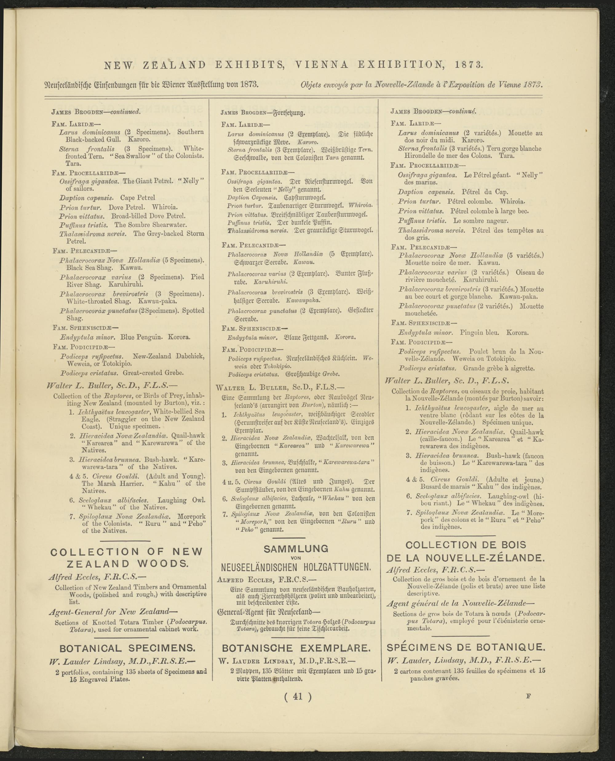 Eollsotion ds L?a/^o-'6>?, oa oissaax ds prois, babitaat 1a ^oavslls-Islands (moatss ^>ar Larton) savoir: