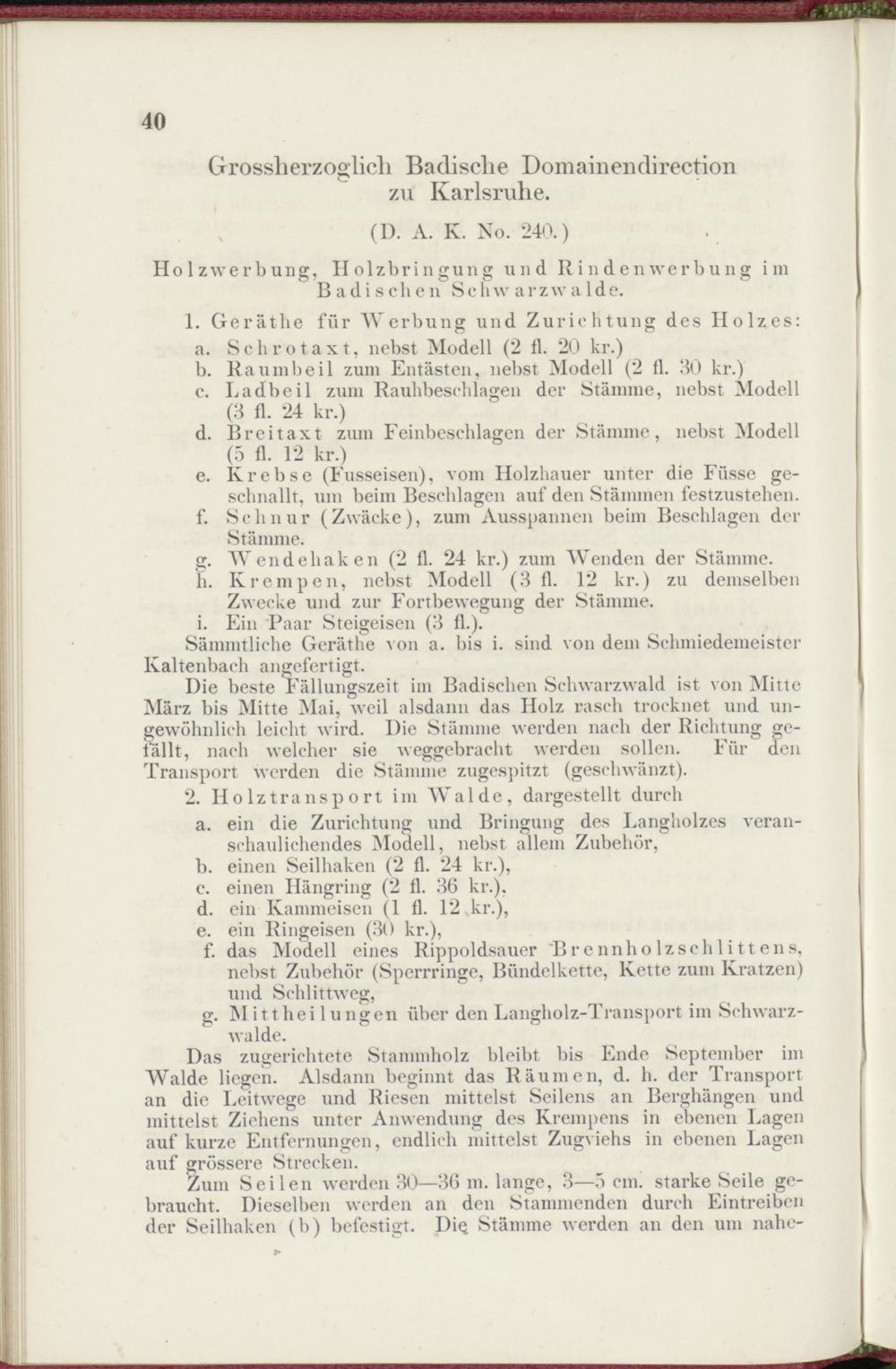 g. Wendehaken (2 fl. 24 kr.) zum Wenden der Stämme.