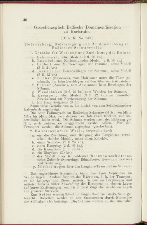 a. ein die Zurichtung und Bringung des Langholzes veranschaulichendes Modell, nebst allem Zubehör,