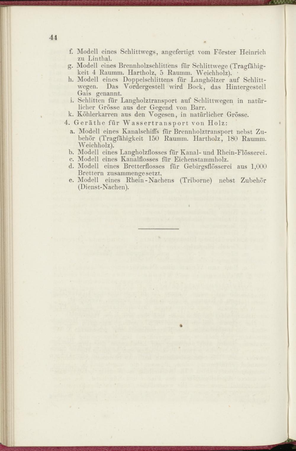 a. Modell eines Kanalschiffs für Brennholztransport nebst Zubehör (Tragfähigkeit 150 Raunnn. Hartholz, 180 Raumm. Weichholz).