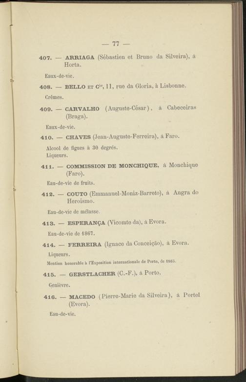 414. FERREIRA (Ignace da Conceiçào), à Evora. Liqueurs.