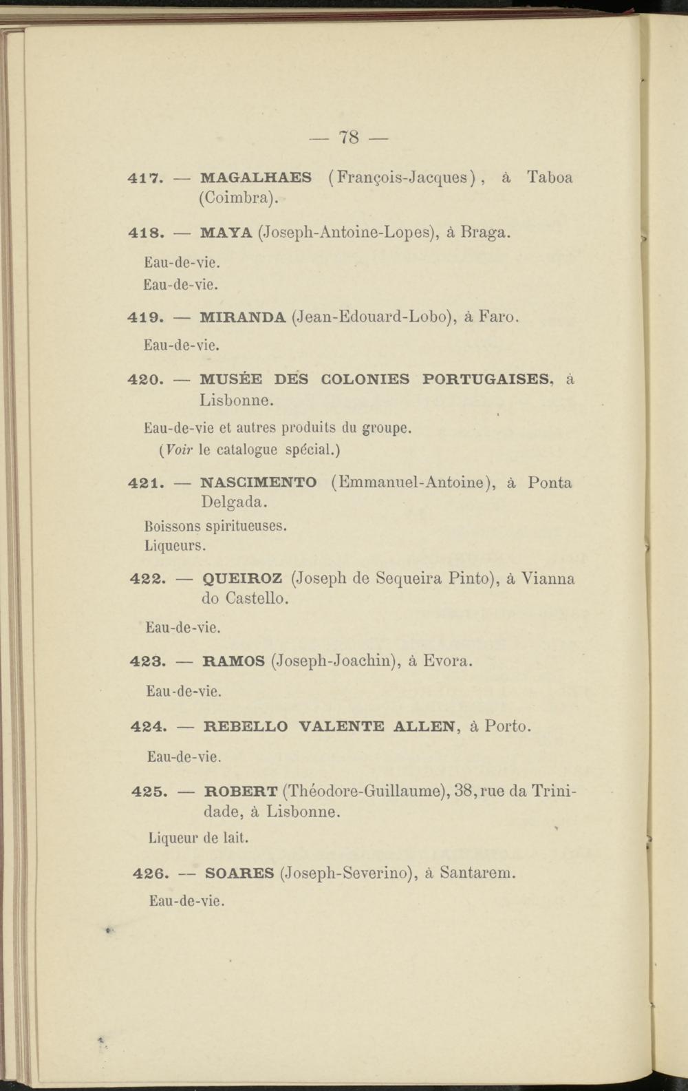 426. SOARES (Joseph-Severino), à Santarem. Eau-de-vie.