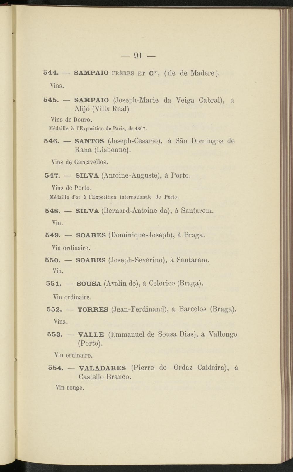 552. — TORRES (Jean-Ferdinand), à Barcelos (Braga). Vins.