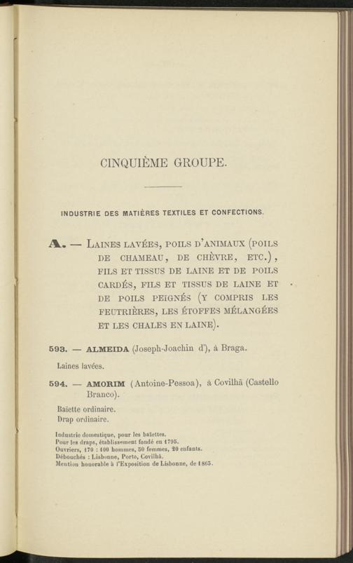 Mention honorable à l’Exposition de Lisbonne, de 1865.