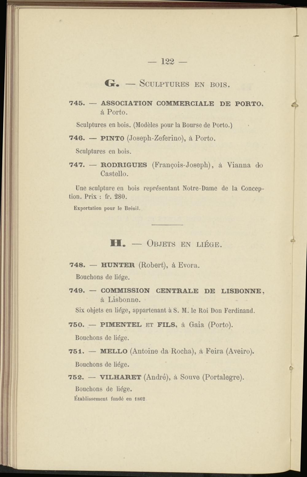 752. — VILHARET (André), à Souve (Portalegre). Bouchons de liège.
