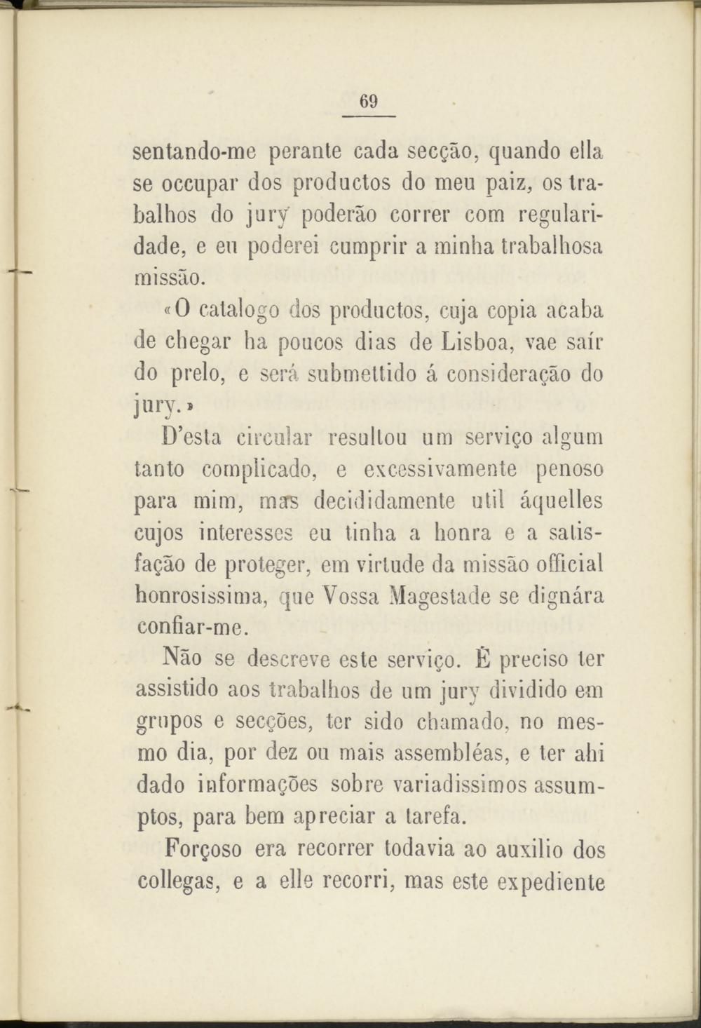 D’esta circular resullou um servido algum tanto complicado, e excesivamente penoso para mim, mas decididamente útil áquelles cujos interesscs eu tinha a honra e a satisfago de proteger, em virlude da missáo official honrosissima, que Vossa Magestade se dignára confiar-me.