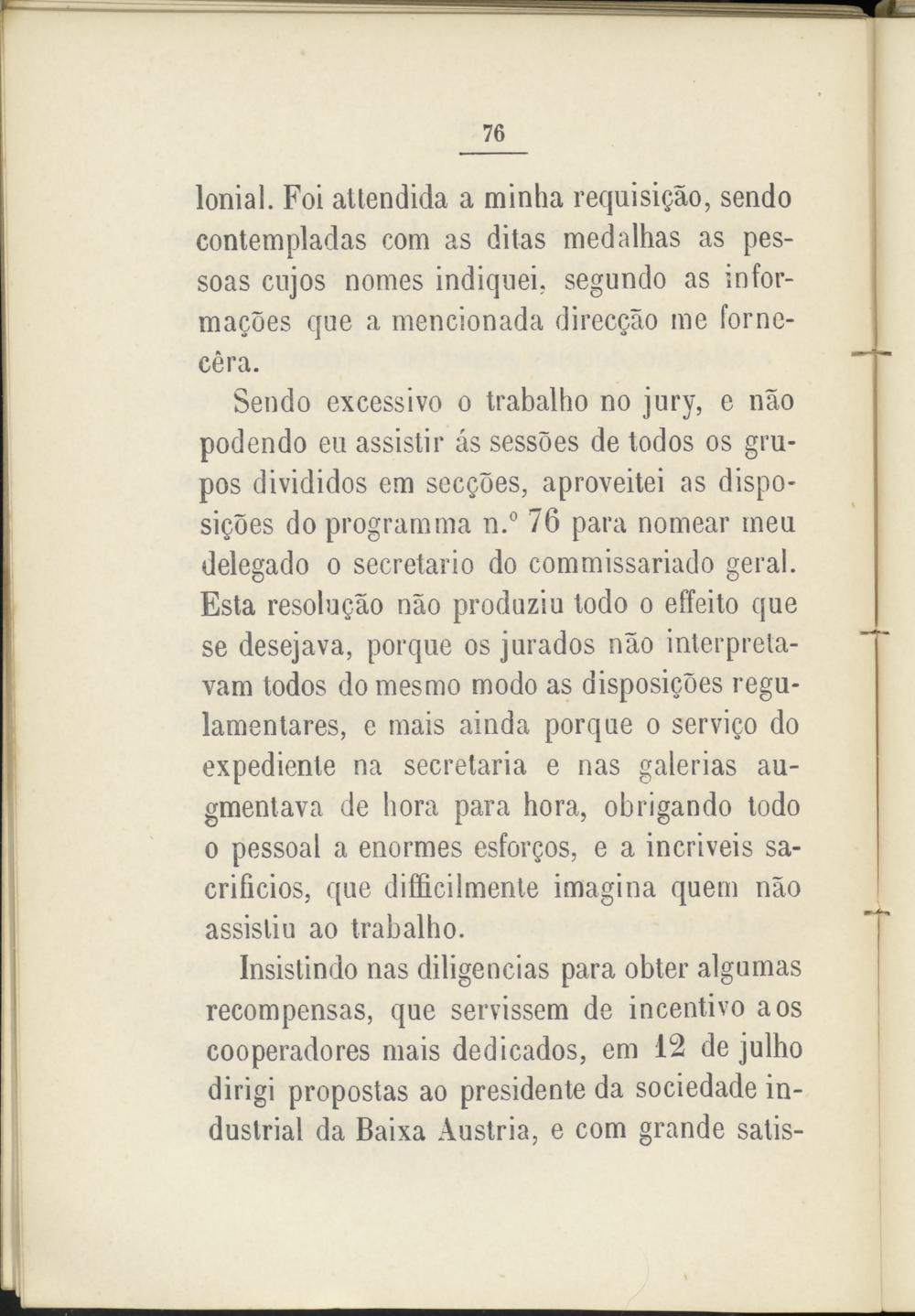 Insislindo ñas diligencias para obter algumas recompensas, que servissem de incentivo a os cooperadores mais dedicados, em 12 de julho dirigi propostas ao presidente da sociedade industrial da Baixa Austria, e com grande satis-