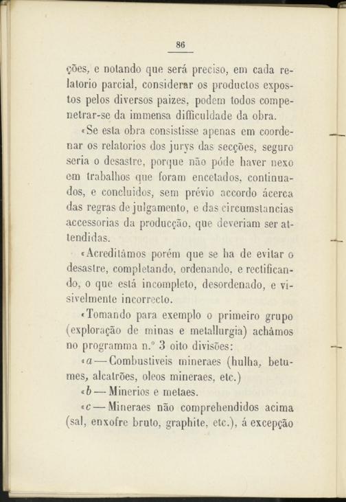 «Se esta obra consistisse apenas em coordenar os relatorios dos jurys das secgóes, seguro seria o desastre, porque nao pode haver nexo em Irabalhos que foram encelados, continuados, e concluidos, sem prévio accordo acerca das regras de julgamento, e das c-ircumslancias accessorias da producgáo, que deveriam ser at- tendidas.