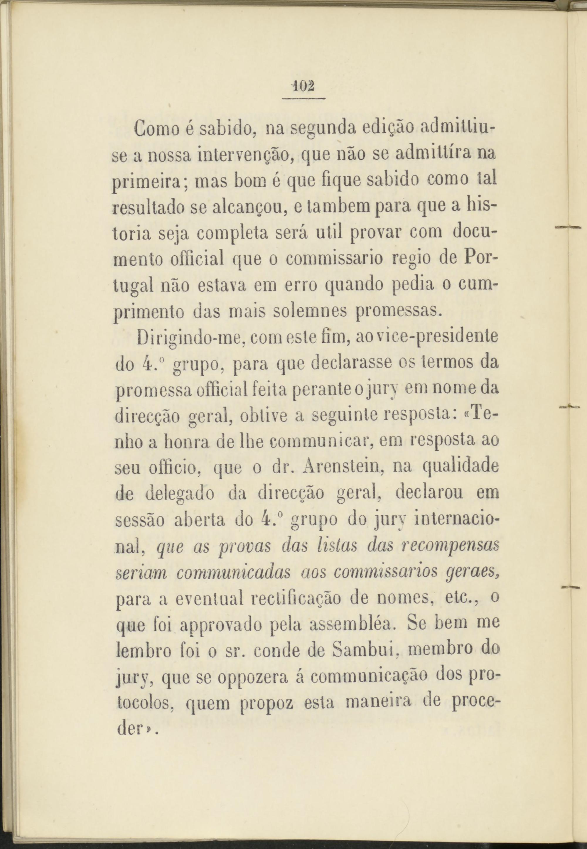 Como é sabido, na segunda edigao admitliu- se a nossa inlervengáo, que nao se admillíra na primeira; mas bom ó que fique sabido como tal resultado se alcangou, e lambem para que a his­toria seja completa será útil provar com docu­mento ofíicial que o commissario regio de Por­tugal nao eslava em erro quando pedia o cum­plimento das mais solemnes promessas.