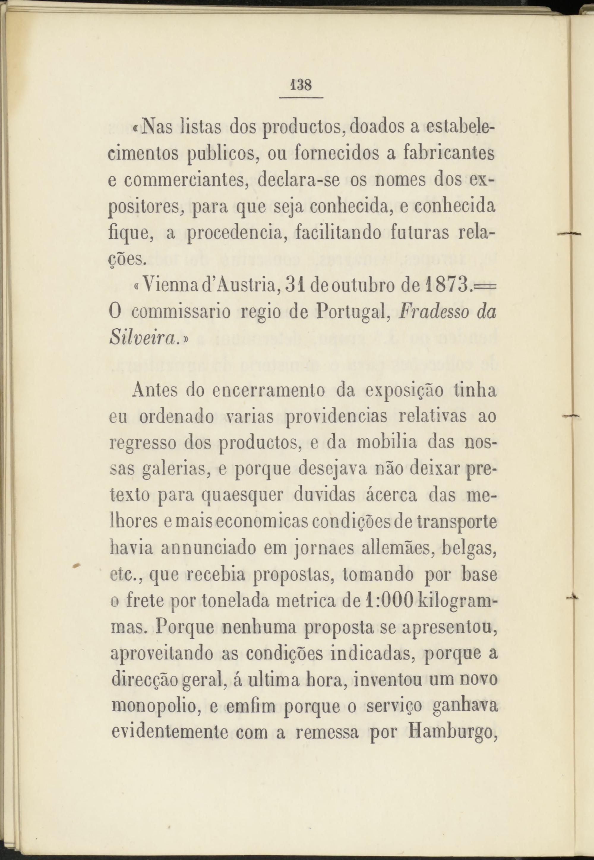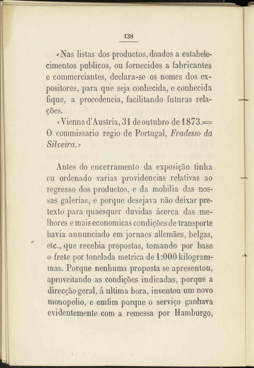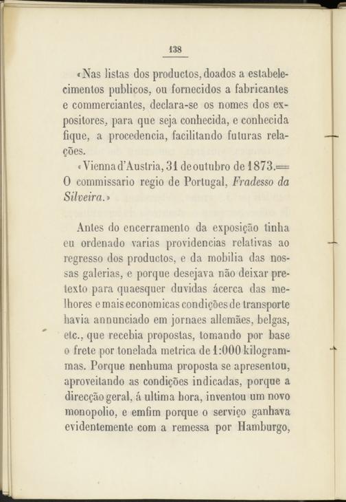 «Viennad’Austria, 31 deoutubro de 1873.= O commissario regio de Portugal, Fradesso da Silveira. *