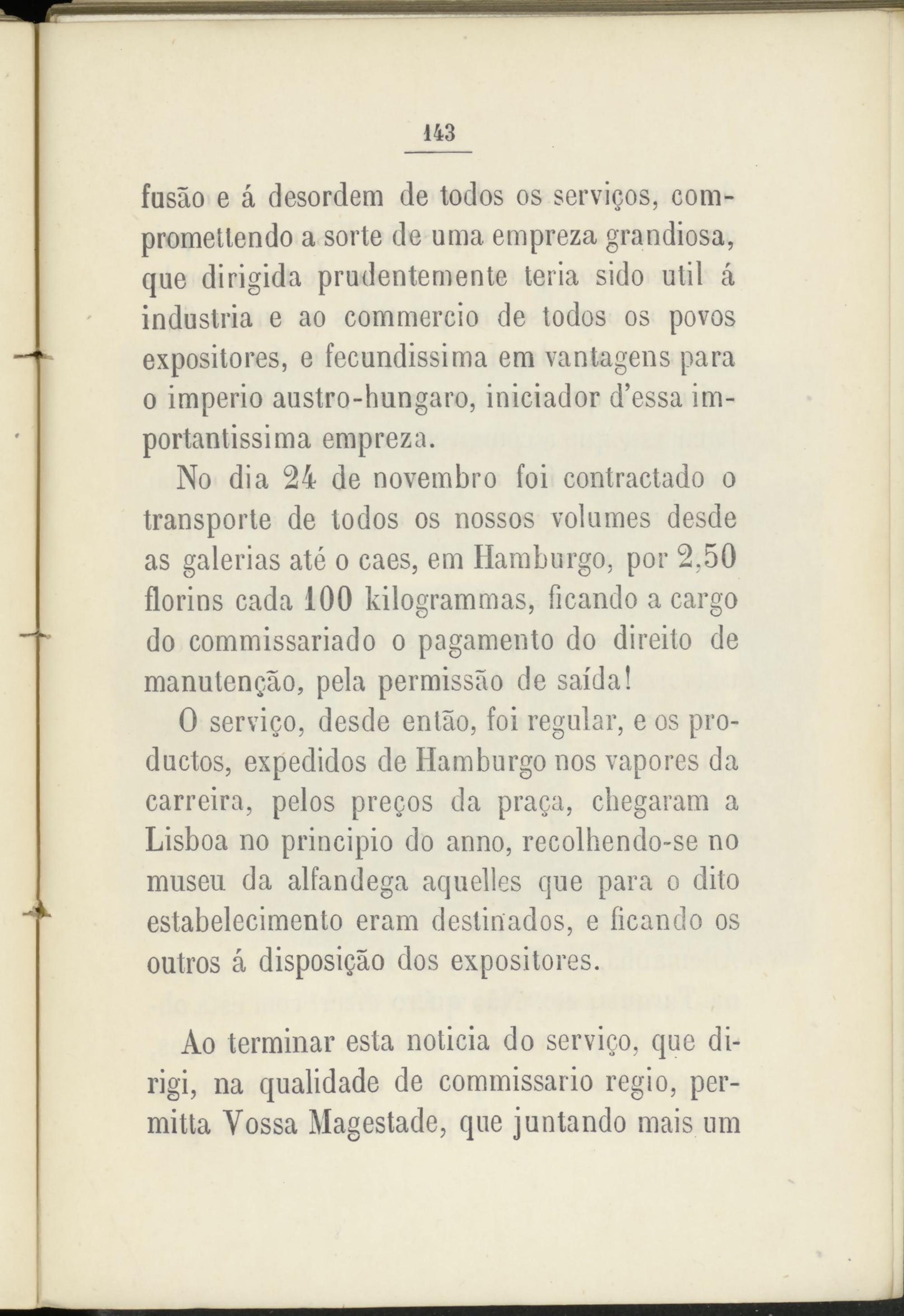 fusáo e á desordem de todos os servidos, comprometiendo a sorte de urna empreza grandiosa, que dirigida prudentemente teria sido útil á industria e ao commercio de todos os povos expositores, e fecundissima em vantagens para o imperio austro-hungaro, iniciador d’essa im- portantissima empreza.