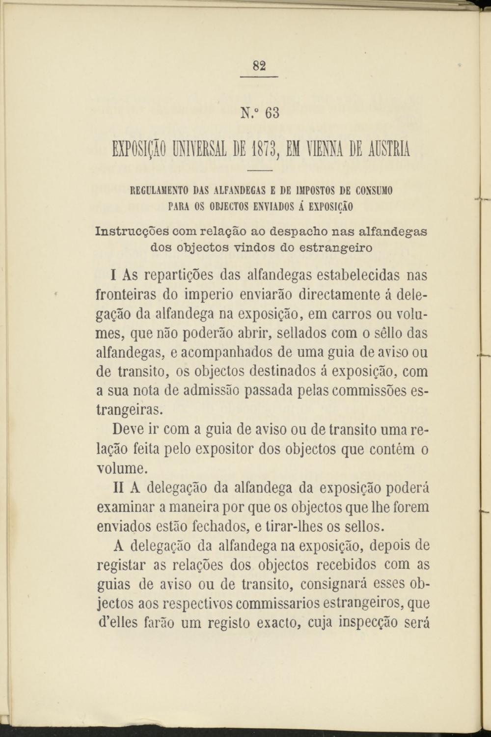I As reparticóes das alfandegas estabelecidas ñas fronteiras do imperio enviaráo directamente á delegado da alfandega na exposigáo, em carros ou voluntes, que nao poderáo abrir, sellados com o séllo das alfandegas, e acompanhados de urna guia de aviso ou de transito, os objectos destinados á exposicáo, com a sua nota de admissao passada pelas commissoes es- trangeiras.