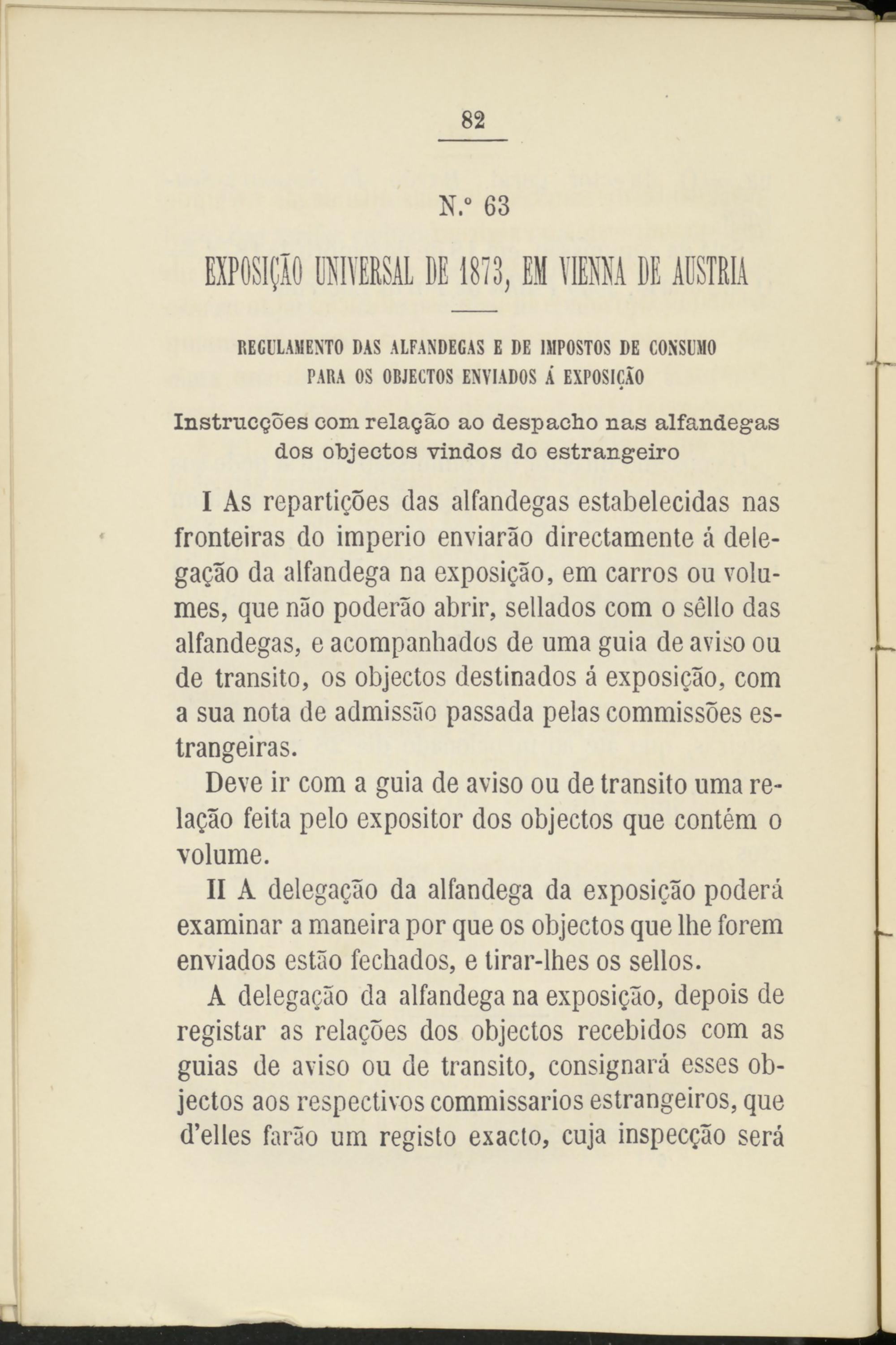 A delegado da alfandega na exposido, depois de registar as relacóes dos objectos recebidos com as guias de aviso ou de transito, consignará esses objectos aos respectivos commissarios estrangeiros, que d’elles faráo um registo exacto, cuja inspecdo será