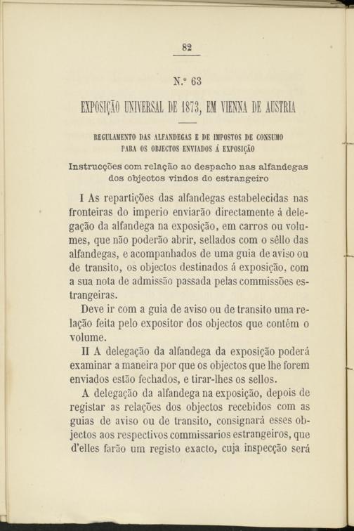 RECILAMENTO DAS ALFANDEGAS E DE 1MPOSTOS DE CONSUMO PARA OS OBJECTOS ENVIADOS A EXPOSICAO