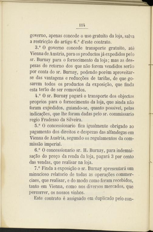 5. ° O concessionario fica igualmente obrigado ao pagamento dos direitos e despezas das alfandegas em Yienna de Austria, segundo os regulamentos da com- missáo imperial.