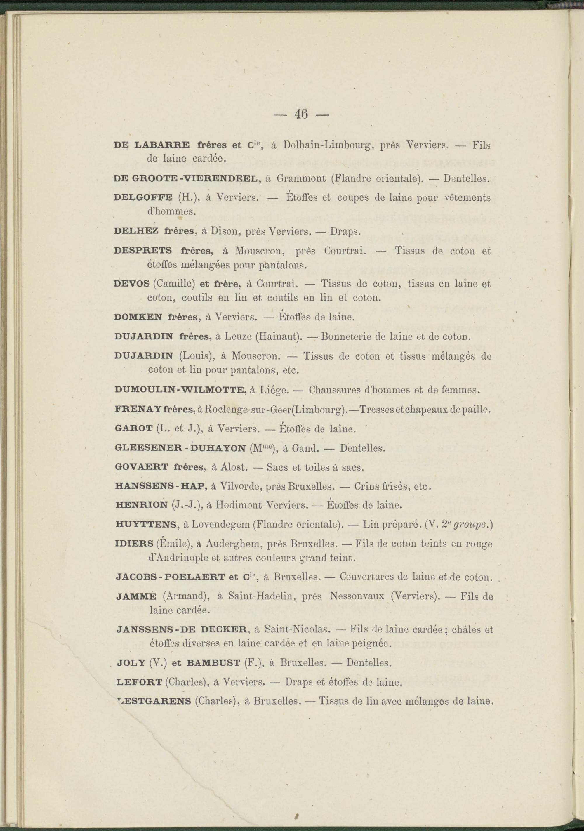 DELHEZ frères, à Dison, près Verviers. — Draps.
