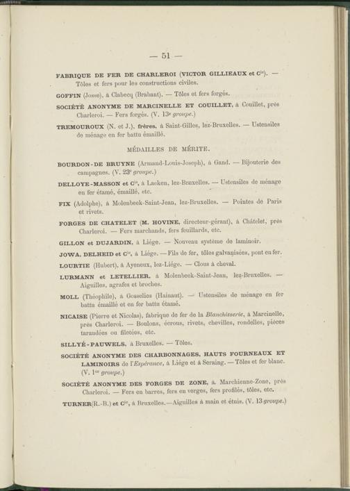 SOCIÉTÉ ANONYME DE MARCINELLE ET COUILLET, à Couillet, près Charleroi. — Fers forgés. (V. 13 e groupe.)