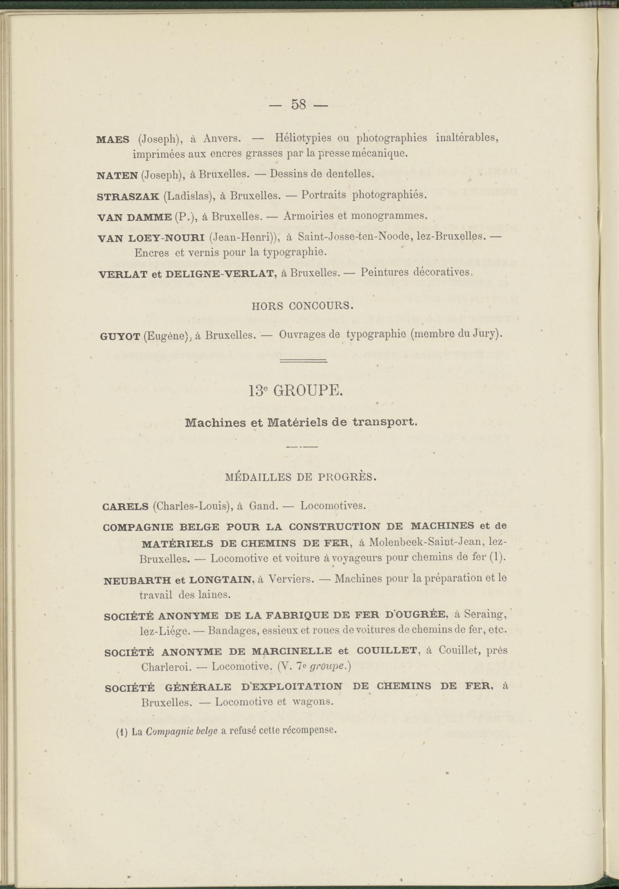 (1) La Compagnie belge a refusé cetle récompense.
