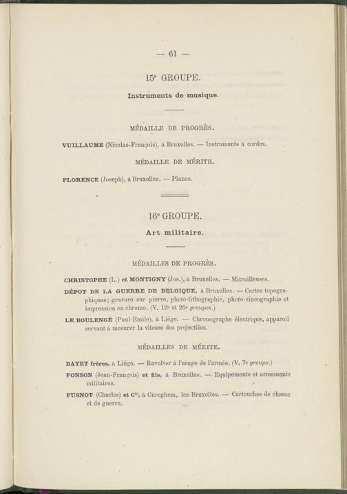 VUILLAUME (Nicolas-François), à Bruxelles. — Instruments à cordes.
