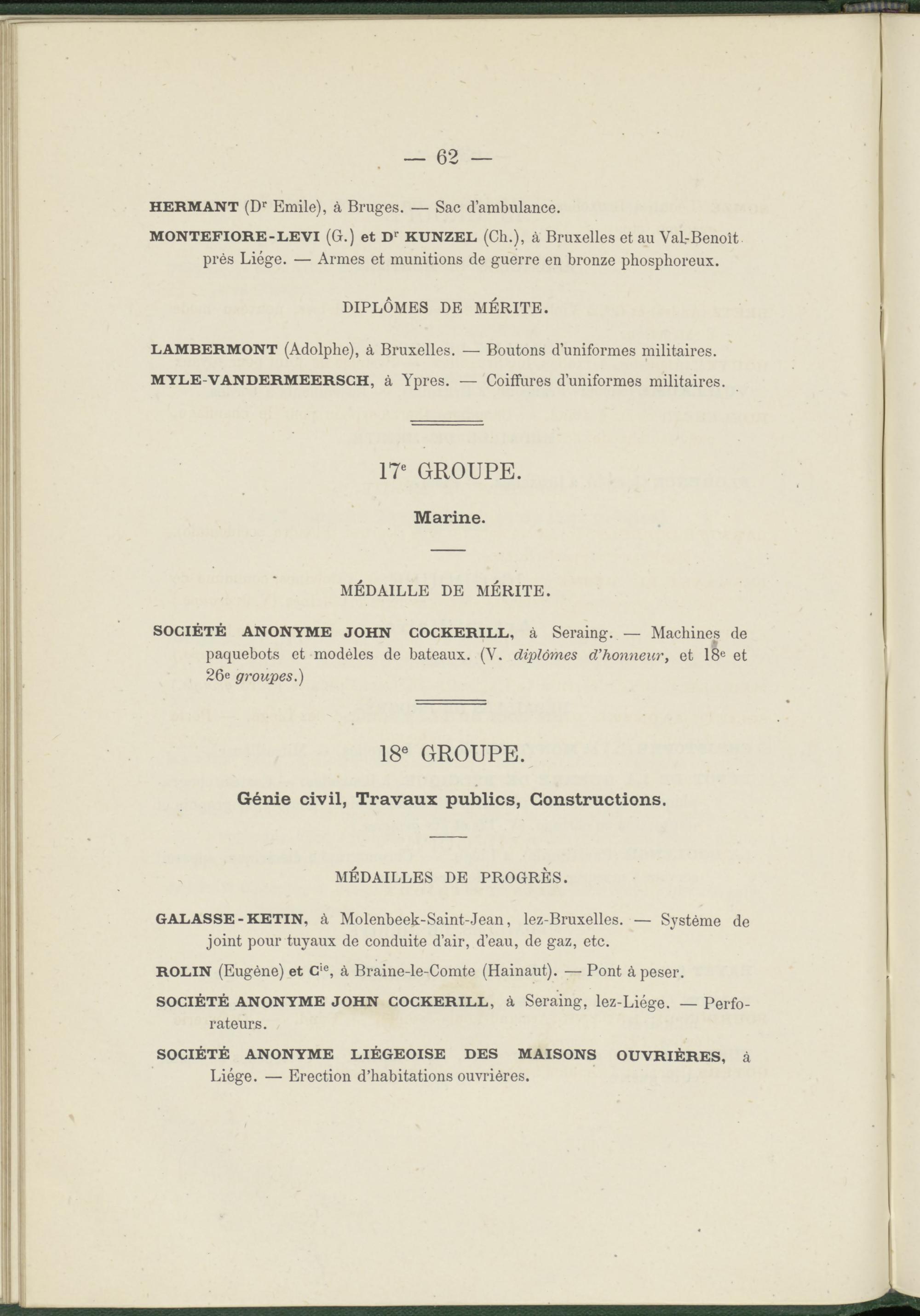 LAMBERMONT (Adolphe), à Bruxelles. — Boutons d’uniformes militaires. MYLE-VANDERMEERSCH, à Ypres. — Coiffures d’uniformes militaires.