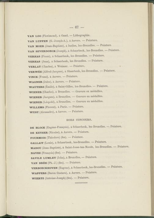 VERBOECKHOVEN (Eugène), à Schaerbeek, lez-Bruxelles. — Peinture. WAPPERS (Baron Gustave), à Anvers. — Peinture.