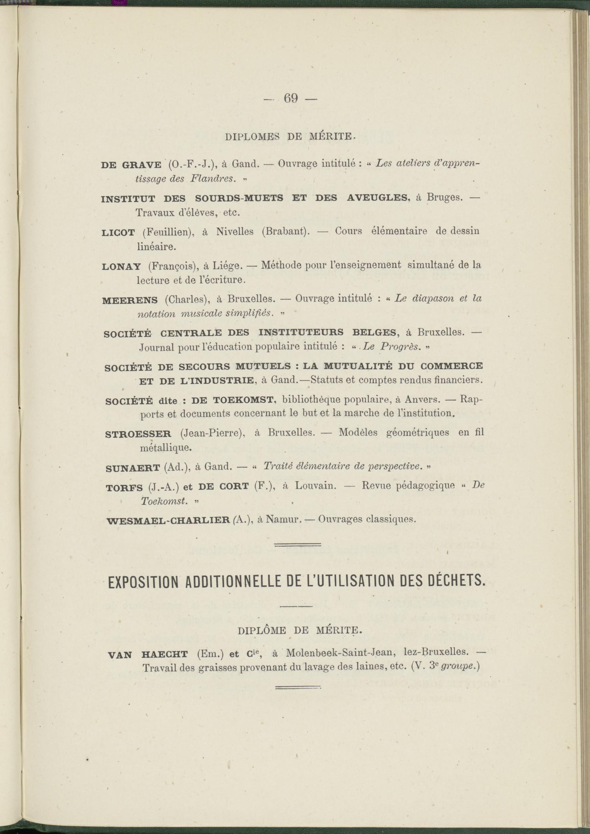 DE GRAVE (O.-F.-J.), à Gand. — Ouvrage intitulé : « Les ateliers d'apprentissage des Flandres. «
