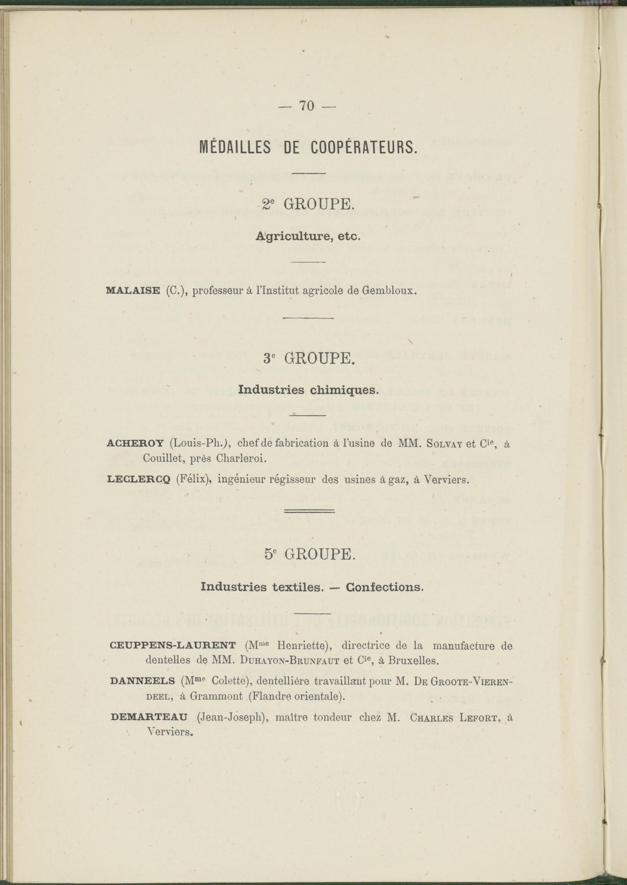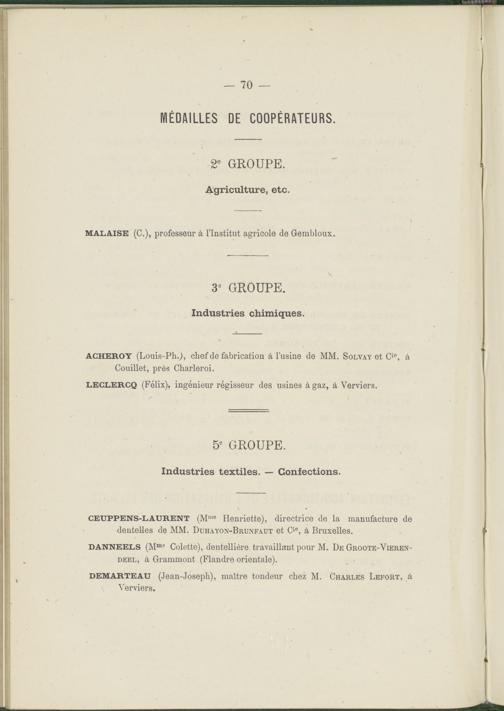 ACHEROY (Louis-Ph.J, chef de fabrication à l’usine de MM. Solvay et C ie , à Couillet, près Charleroi.
