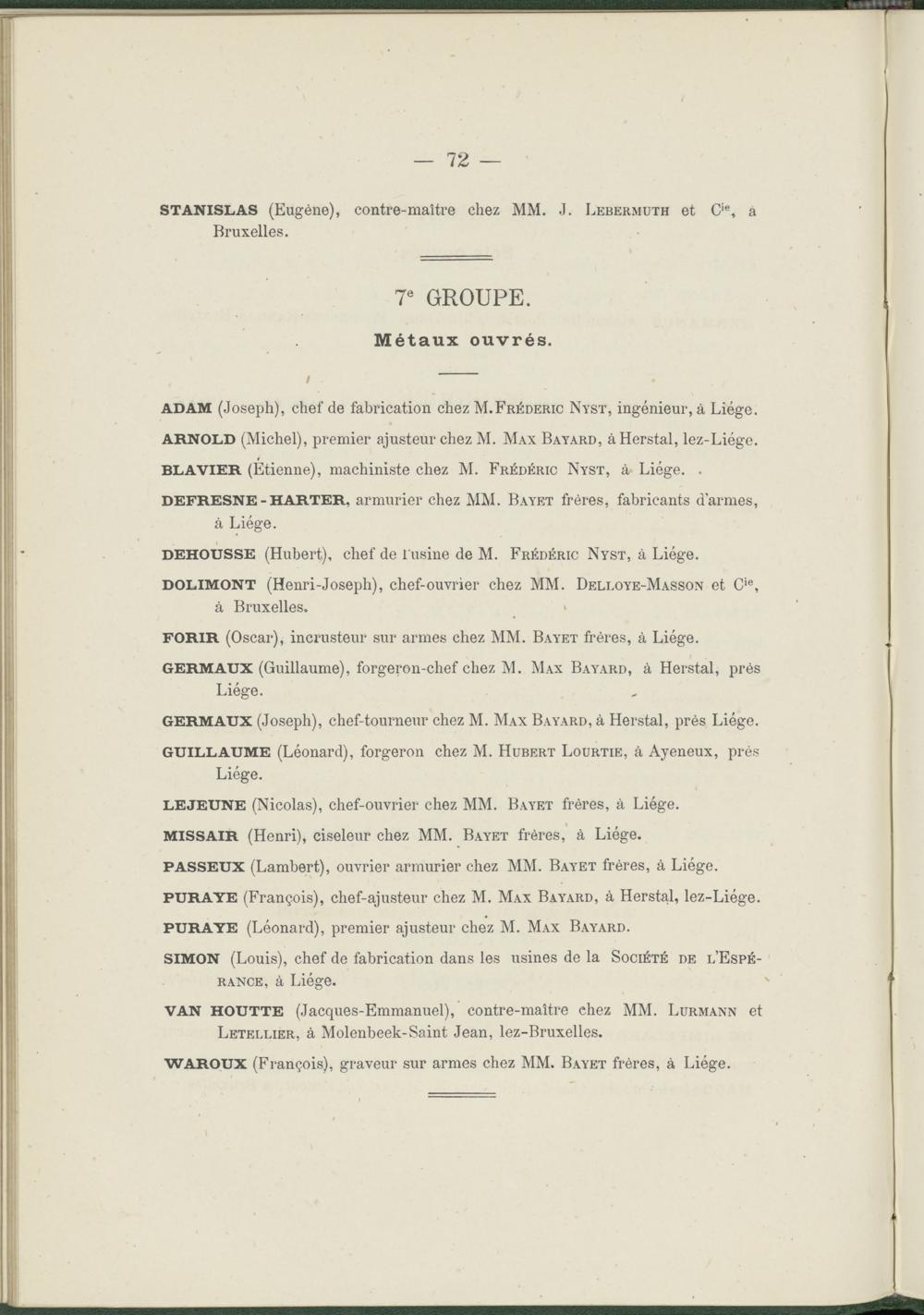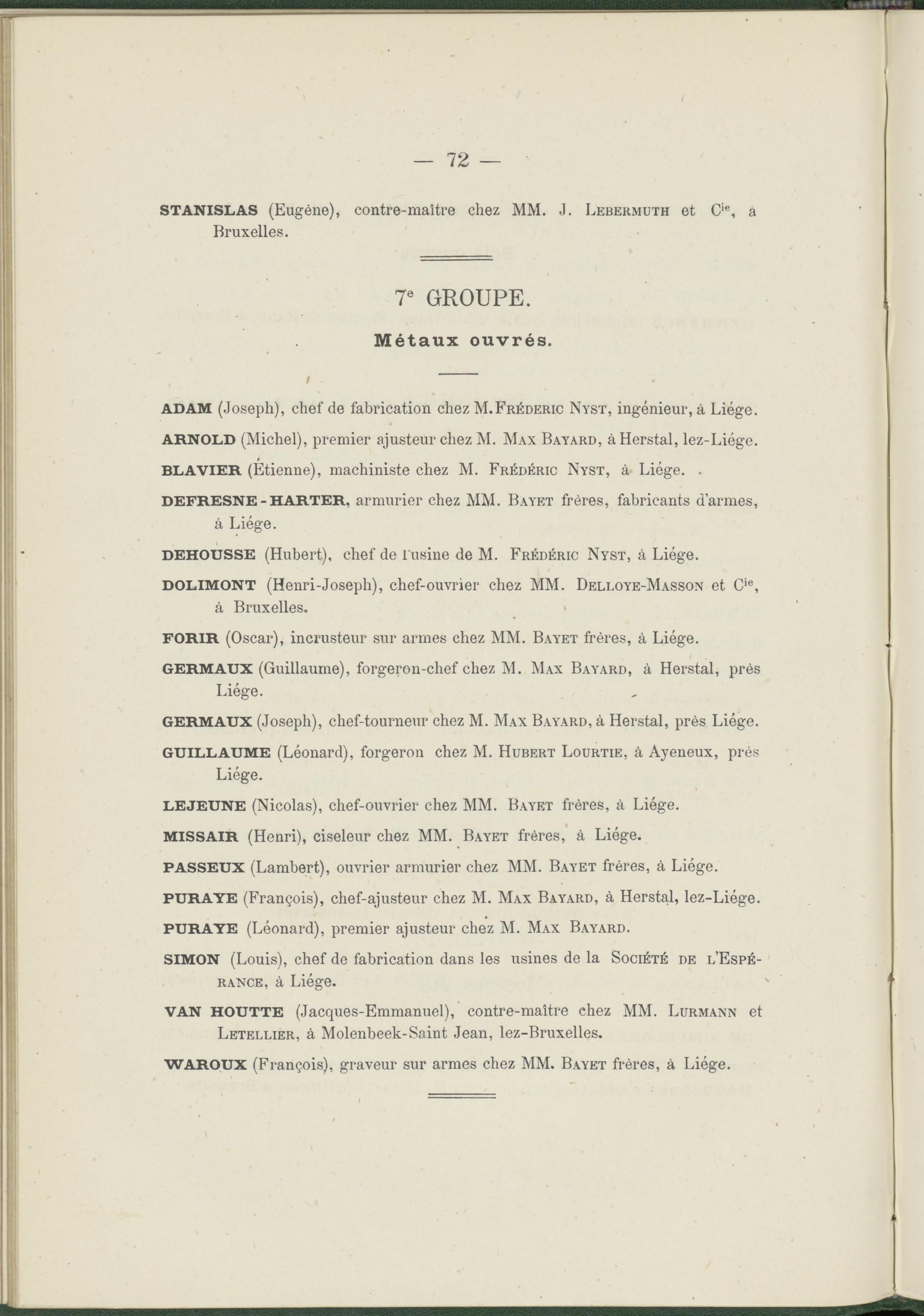STANISLAS (Eugène), contre-maître chez MM. J. Lebermuth et C ie , à Bruxelles.