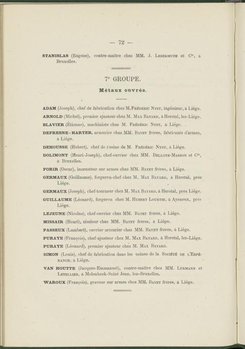 DEFRESNE -HARTER, armurier chez MM. Bayet frères, fabricants d’armes, à Liège.