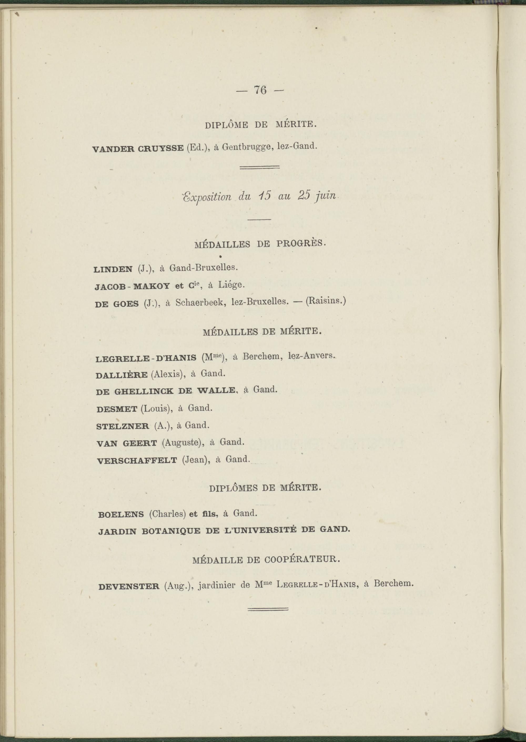 LEGRELLE-D’HANIS (M me ), à Berchem, lez-Anvers. DALLIÈRE (Alexis), à Gand.