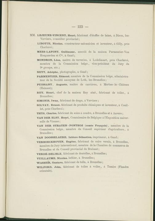 PARMENTIER, Edmond, membre de la Commission belge, administrateur de la Société anonyme de Loth, lez-Bruxelles ;