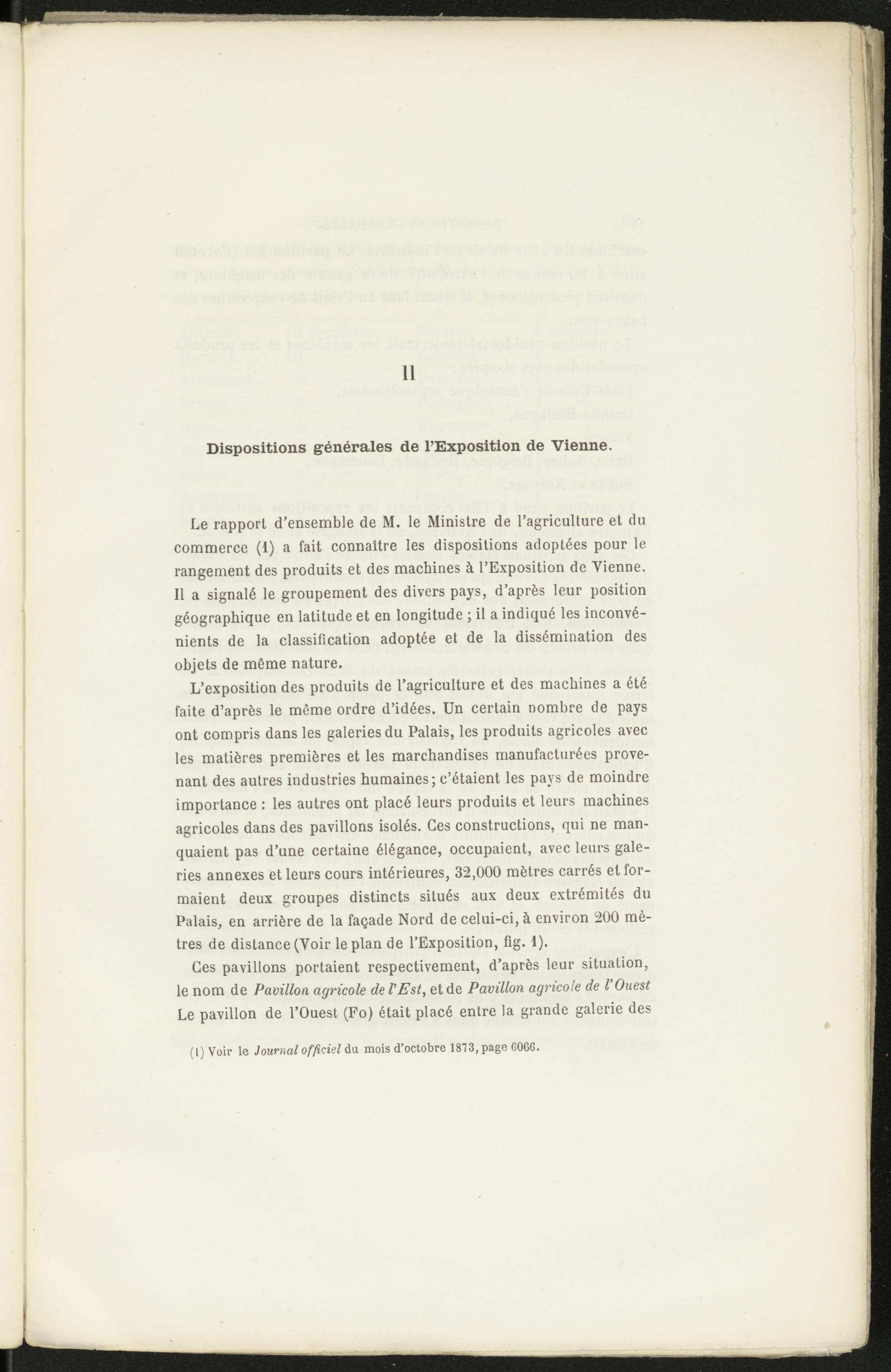 Le rapport d’ensemble de M. le Ministre de l’agriculture et du commerce (i) a fait connaître les dispositions adoptées pour le rangement des produits et des machines à l’Exposition de Vienne. Il a signalé le groupement des divers pays, d’après leur position géographique en latitude et en longitude ; il a indiqué les inconvénients de la classification adoptée et de la dissémination des objets de même nature.