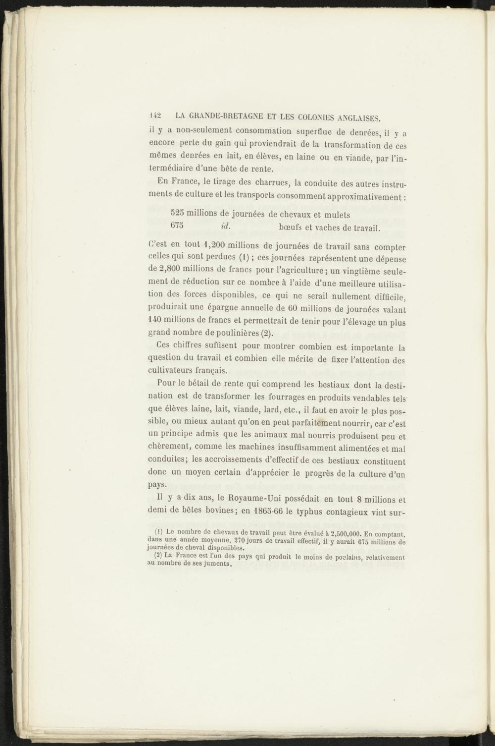 (!) Le nombre de chevaux de travail peut être évalué à 2,500,000. En comptant, dans une année moyenne, 270 jours de travail effectif, il y aurait 675 millions de journées de cheval disponibles.