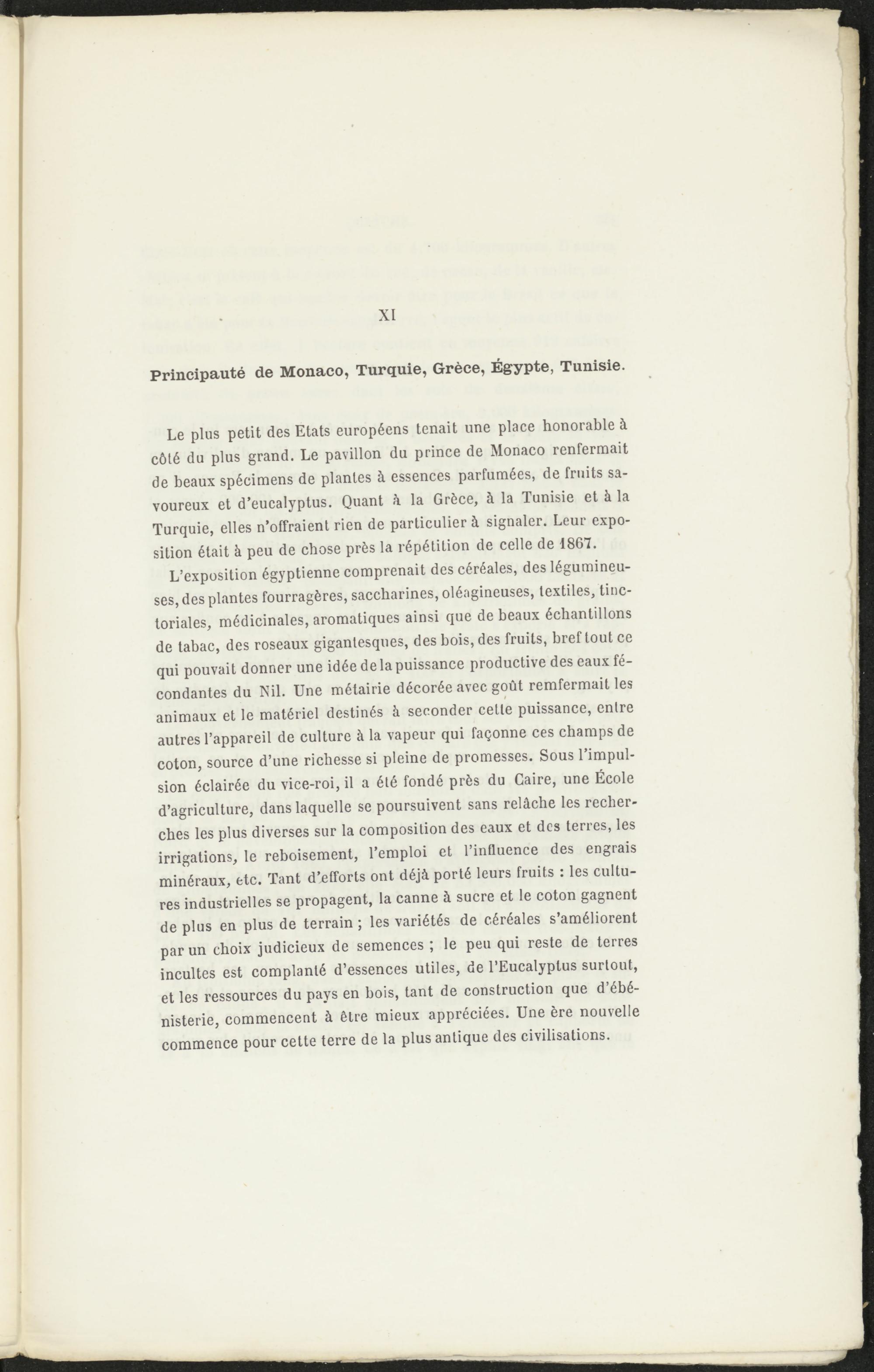 Le plus petit des Etats européens tenait une place honorable à côté du plus grand. Le pavillon du prince de Monaco renfermait de beaux spécimens de plantes à essences parfumées, de fruits savoureux et d’eucalyptus. Quant à la Grèce, à la Tunisie et à la Turquie, elles n’offraient rien de particulier à signaler. Leur exposition était à peu de chose près la répétition de celle de 1867.