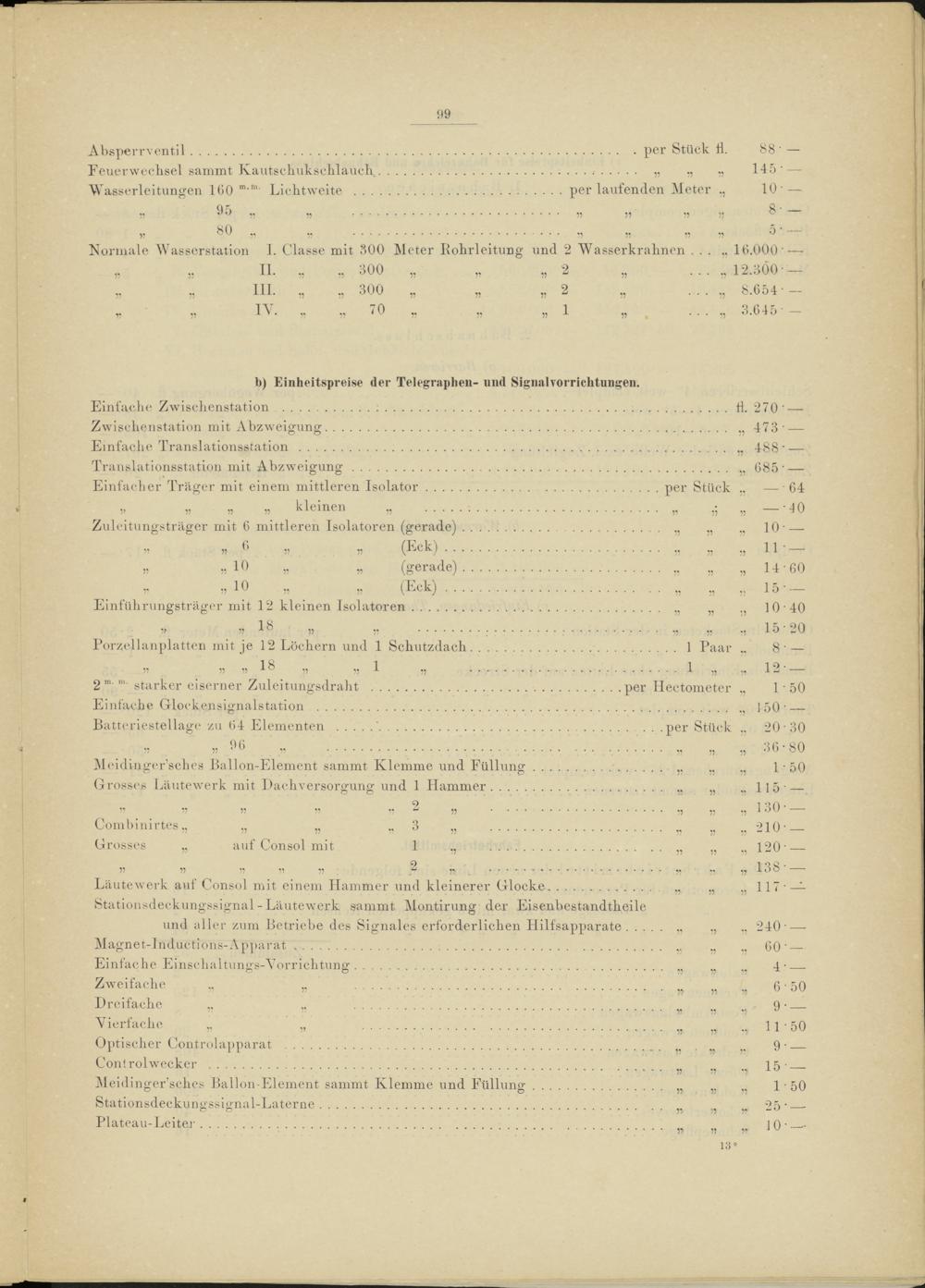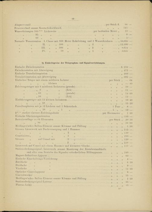 b) Einheitspreise der Telegraphen- und Signalvorrichtungen.
