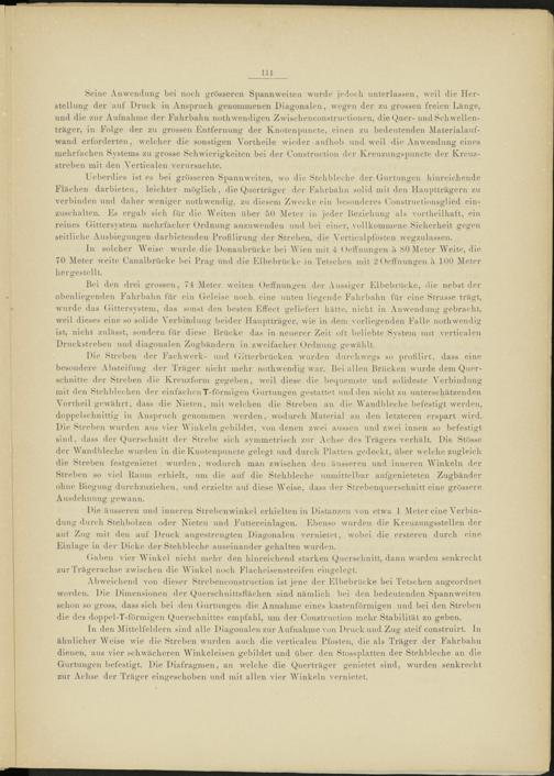 ln solcher Weise wurde die Donaubrücke bei Wien mit 4 Oetfnungen ä 80 Meter Weite, die. 70 Meter weite Canalbrücke bei Prag und die Elbebrücke in Tetsehen mit 2 Oetfnungen ä 100 Meter hergestellt.