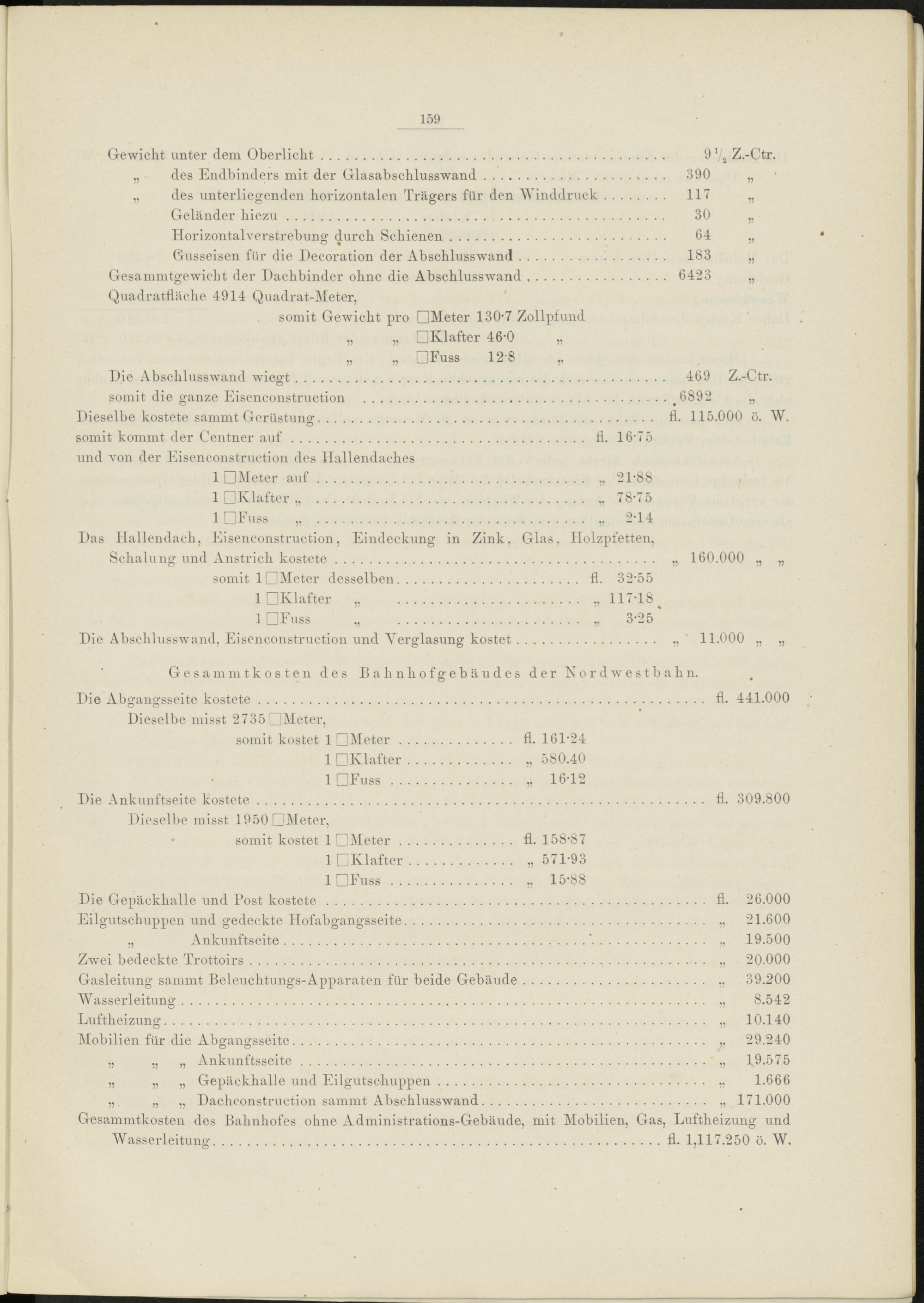Gesammtkosten des Bahnhofes ohne xVdministrations-Gebäude, mit Mobilien, Gas, Luftheizung und Wasserleitung.fl. 1,117.250 ö. W.
