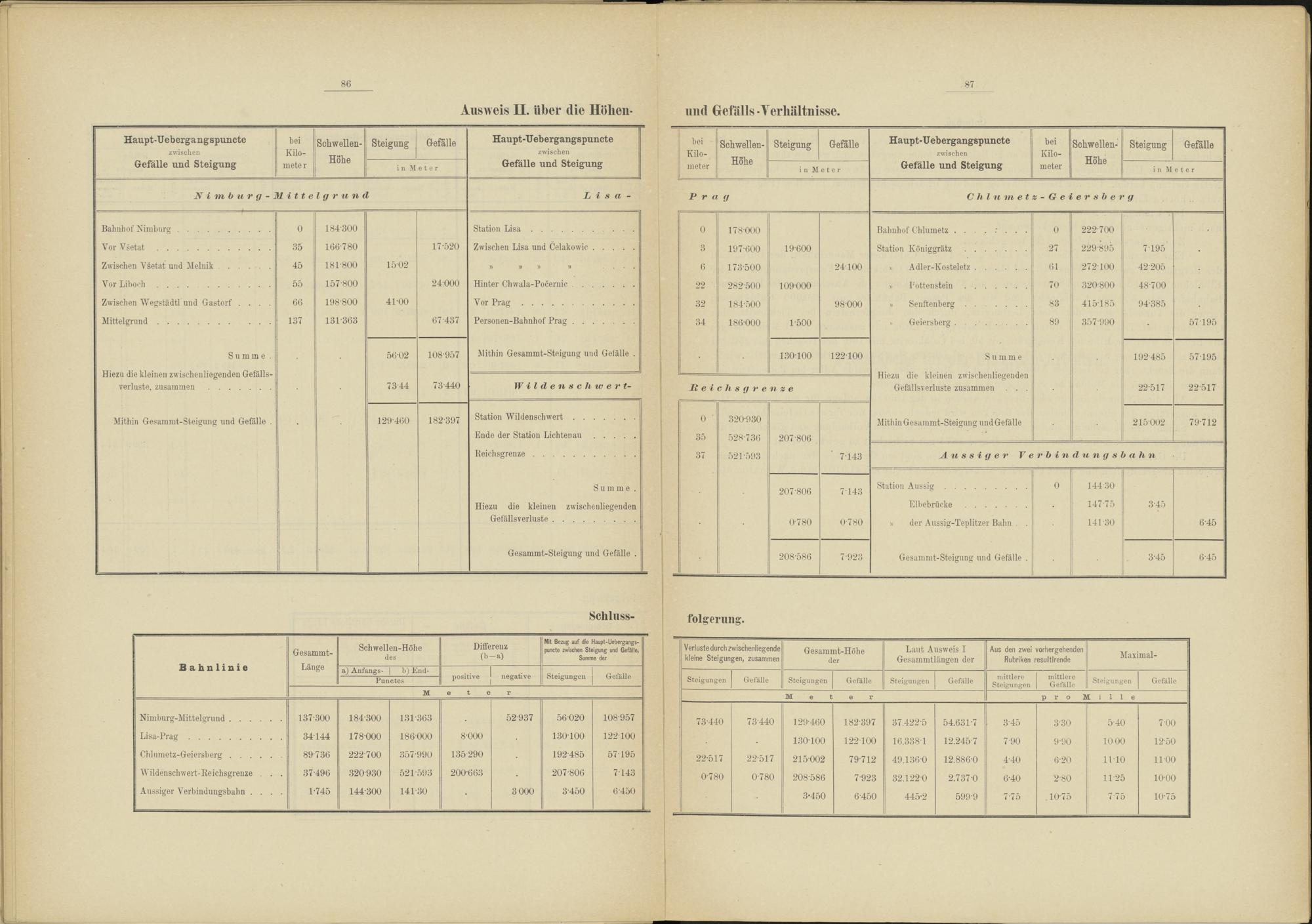 Mit Bezug auf die Haupt-Uebergangs- puncte zwischen Steigung und Gefälle, Summe der