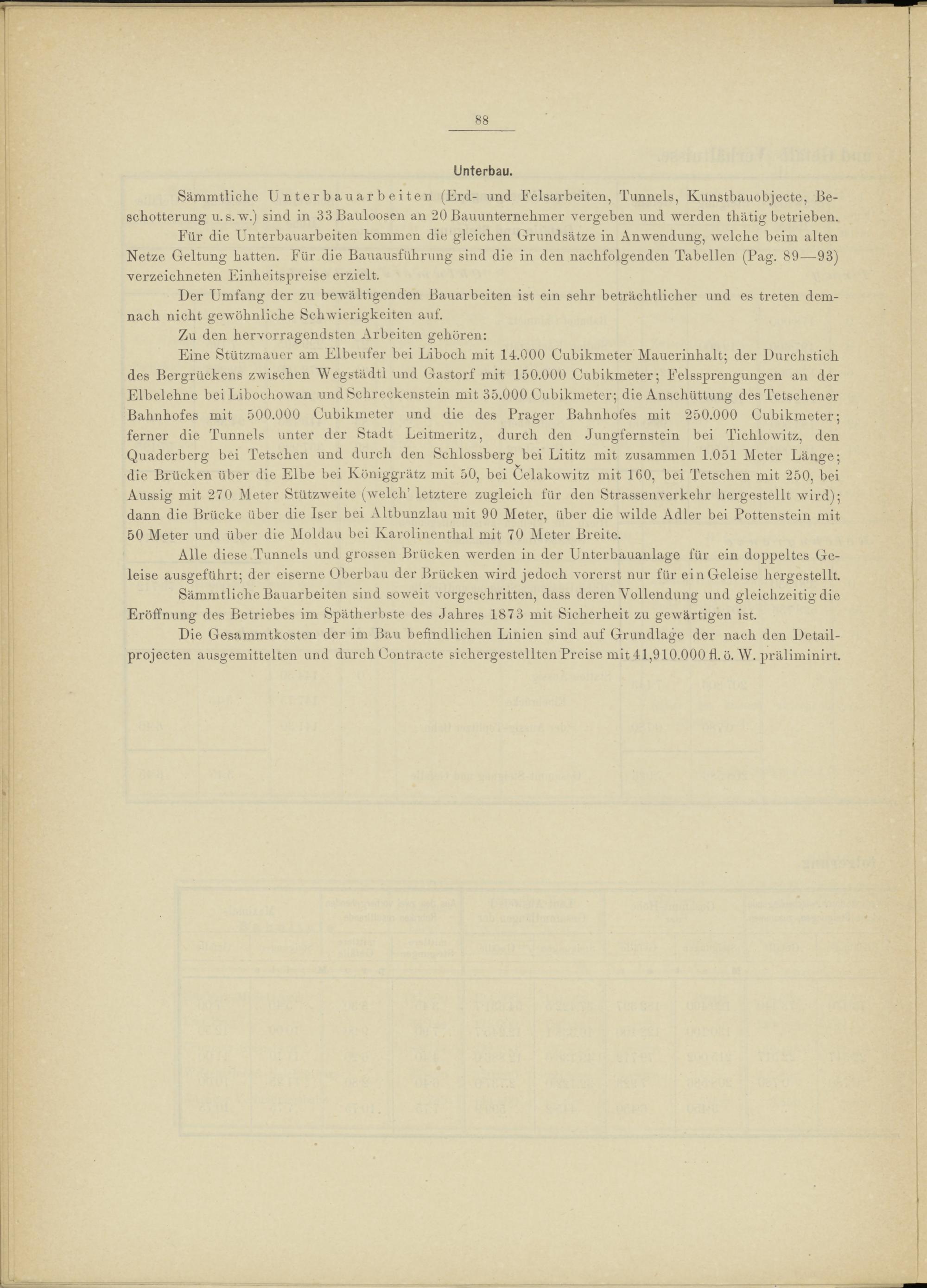 Für die Unterbauarbeiten kommen die gleichen Grundsätze in Anwendung, welche beim alten Netze Geltung hatten. Für die Bauausführung sind die in den nachfolgenden Tabellen (Pag. 89—93) verzeichneten Einheitspreise erzielt.