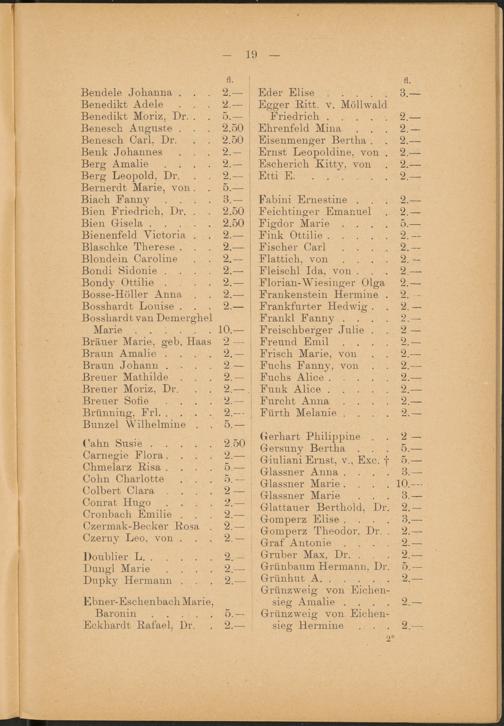 Freischberger Julie . Freund Emil Frisch Marie, von Fuchs Fanny, von Fuchs Alice .... Funk Alice .... Furcht Anna Fürth Melanie .