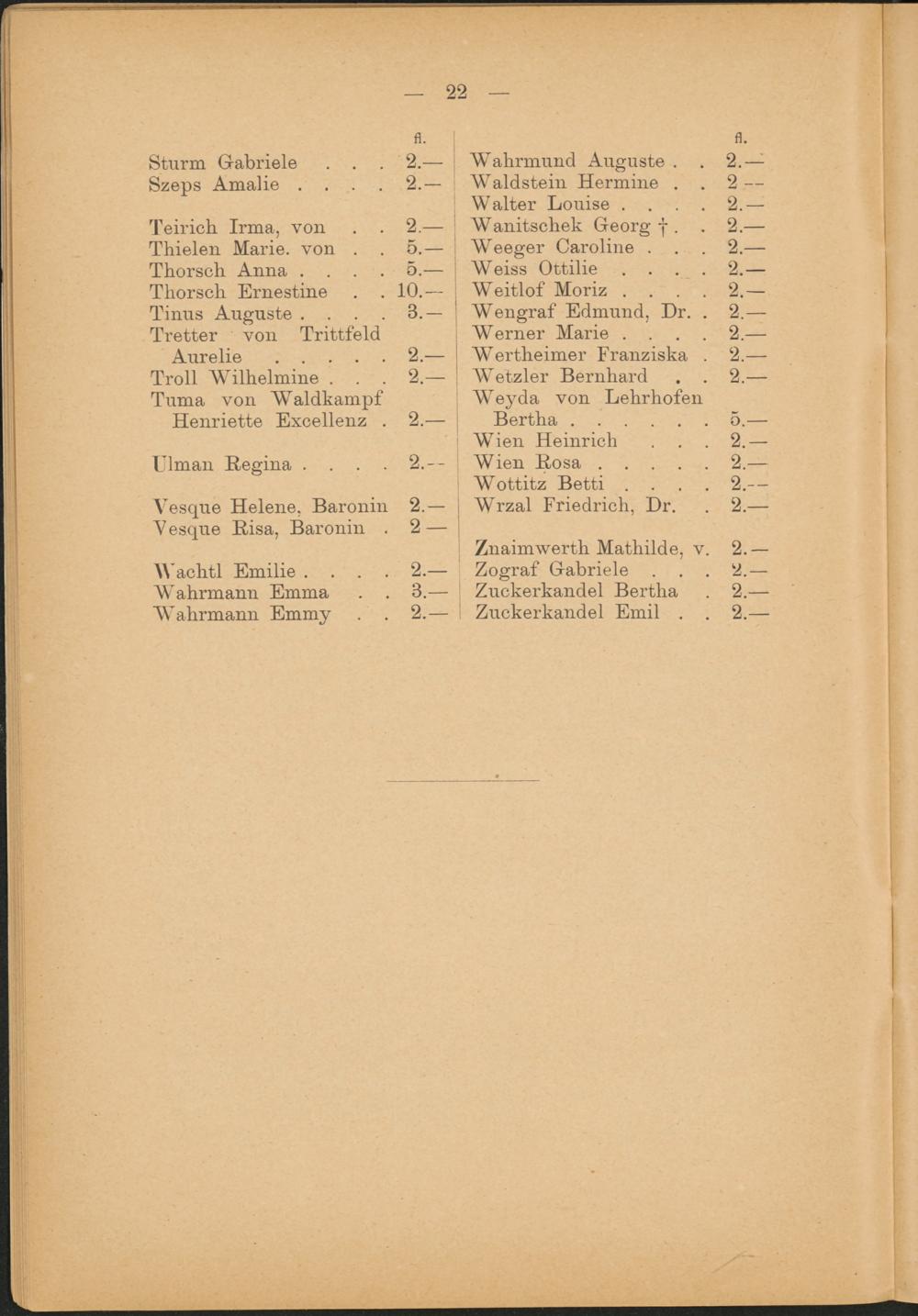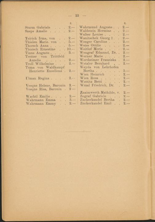 Weiss Ottilie .... Weitlof Moriz .... Wengraf Edmund, Hr. . Werner Marie .... Wertheimer Franziska . Wetzler Bernhard Weyda von Lehrhofen