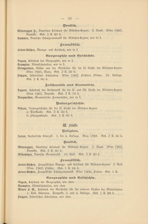 Mitteregger, Deutsches Lesebuch für Mädchen-Lyzeeu. Z. Band. Wien shOö, Deuticke. Geb. Z K 60 k.